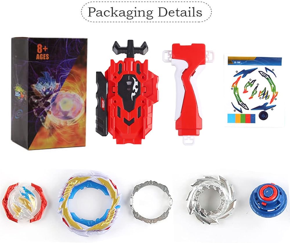 【Package Includes】:1x Spinning Top; 1x Launcher;1xGrip; 1x Sticker; 1x Manual.(Use the given stickers to make it look even cooler!)