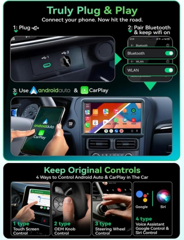 • شريحة بلوتوث 5.3 مطورة: يستخدم محول بلوتوث Aux للسيارة أحدث شريحة بلوتوث 5.3. الهدف من هذا المحول هو تحسين سرعة النقل والموثوقية والاستقرار واستهلاك الطاقة مع توفير مكالمات واضحة وضوضاء ساكنة منخفضة للغاية وجودة صوت القرص المضغوط.
