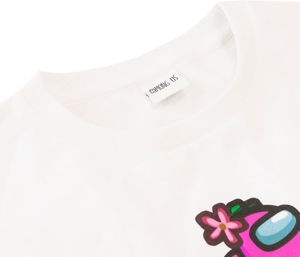 Kids Among Us Sweatshirt. Get your gamer ready to catch the impostor with this space-tastic Among Us Sweatshirt! This white top features a print of a pink crewmate with a flower and Among us printed underneath on the chest. Complete ribbed cuff Whether completing tasks or sabotage others, they can board the space ship in style with this awesome Among Us daywear!