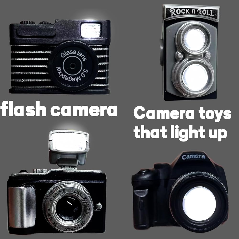 Four types of cameras: DSLR, digital SLR, antique, and digital cameras. The miniature cameras are crafted from high-quality plastic, ensuring durability and sturdiness.