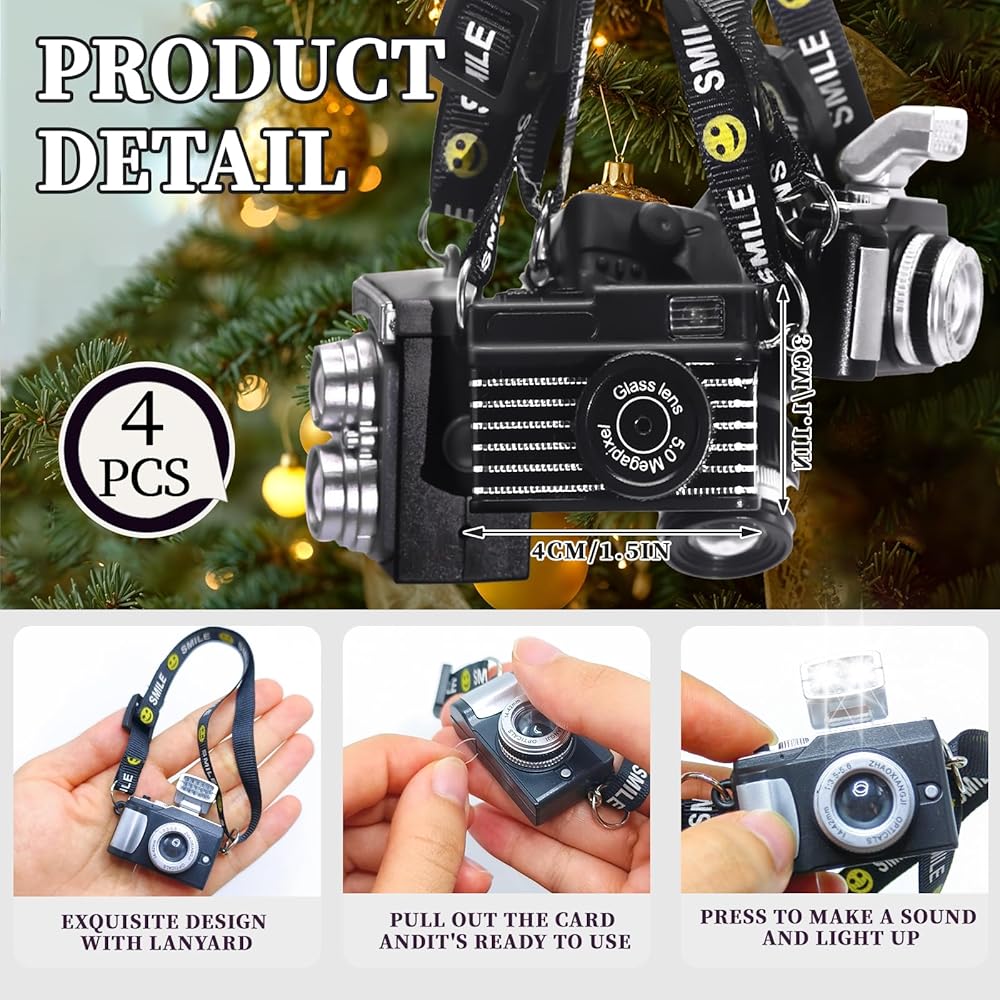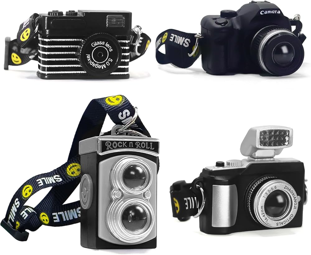 Crafted from durable high-quality plastic, the set includes four types of cameras: DSLR, digital SLR, antique, and digital cameras. Scaled at 1:4, these cameras resemble mini houses, making them ideal for crafting unique miniature worlds. The design strings with smiling face patterns bring a joyful atmosphere to your mini house design, providing fresh ideas for DIY decoration. The exquisite accessories not only pique interest but also introduce various shooting styles and unique features, emphasizing detailed design. Each mini camera adds an extra element of fun to your miniature projects.