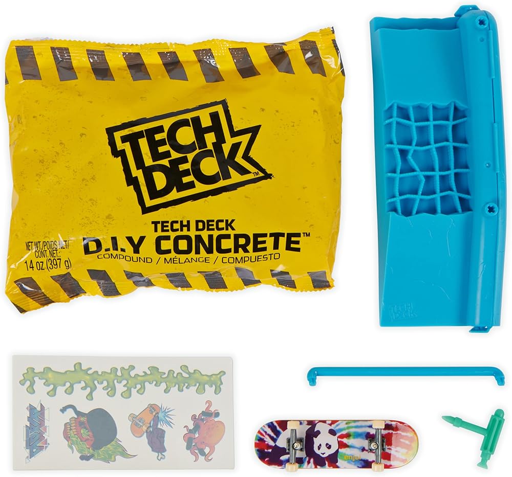 Build your own fingerboard obstacle course with the Tech Deck DIY Concrete Reusable Modeling skatepark! This set comes with everything you need to create your own skateboard ramps and rails, including 14oz of reusable concrete compound, ramp and rail molds, a molding tool, and an exclusive Enjoi Fingerboard! The DIY concrete is easy to use and reuse, great to use with mini skateboards for kids. Wet it, set it, and shred it! Simply add water, let it sit for 6-8 hours, and your creation will harden just like concrete. Use the molds to create perfect fingerboard ramps or create your own fingerboard skatepark to level up your skill. Simply add water to create new challenges. Challenge your friends, develop your skills, and build your Tech Deck collection with other toy figures & playsets. Tech Deck fingerboards are for skate-lovers ages 6 and up who love small toys. Create your own obstacles with the Tech Deck DIY Concrete Reusable Modeling Playset! Tech Deck mini skateboards for fingers and ramp sets make the perfect gift for girls toys age 6-8 who love small toys and cool toys or as an alternative to toy cars as a boys toys age 6-8 item. If you want real skate graphics from real skate companies, then it has got to be Tech Deck — start small, go big and collect them all!