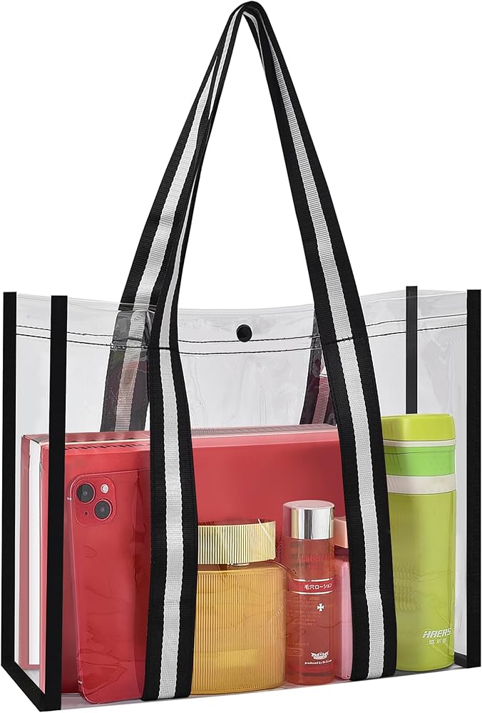 MAY TREE حقيبة شفافة للأمان للسفر وصالة الألعاب الرياضية، حقيبة شفافة مثالية للعمل والحفلات والألعاب الرياضية باللون الأسود