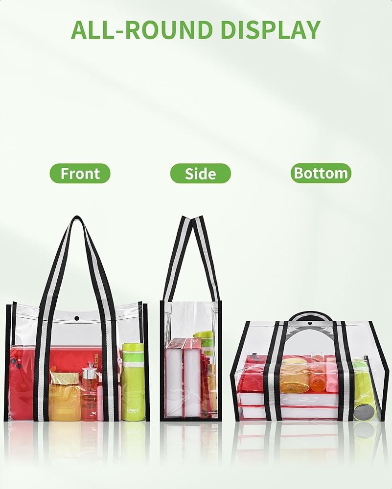 - 【مناسبات قابلة للتطبيق】الحقائب الشفافة مثالية لحمل غداءك للعمل والشاطئ. كما أنها رائعة لحمل الحفاضات وغيرها من الأشياء للنساء والطلاب.