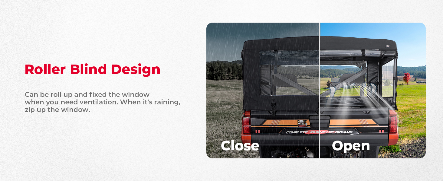 • 【نوافذ دوارة مريحة】 يتميز غطاء سرير KEMIMOTO بنوافذ شفافة على أربعة جوانب، والتي يمكن لفها وإبقائها مفتوحة وفقًا لاحتياجاتك. يمكن لغطاء KEMIMOTO UTV أن يمنع المطر لمدة دقيقة ويمكن لفه للسماح بدخول الرياح في المرة التالية.