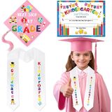 BOARDFEB 3 قطع 2024 وشاح تخرج للأطفال و2024 قبعة تخرج لمرحلة ما قبل المدرسة رياض الأطفال مع شهادة، قبعة تخرج مرنة قابلة للتعديل وشاح شرابة للأطفال الأولاد والبنات والأطفال