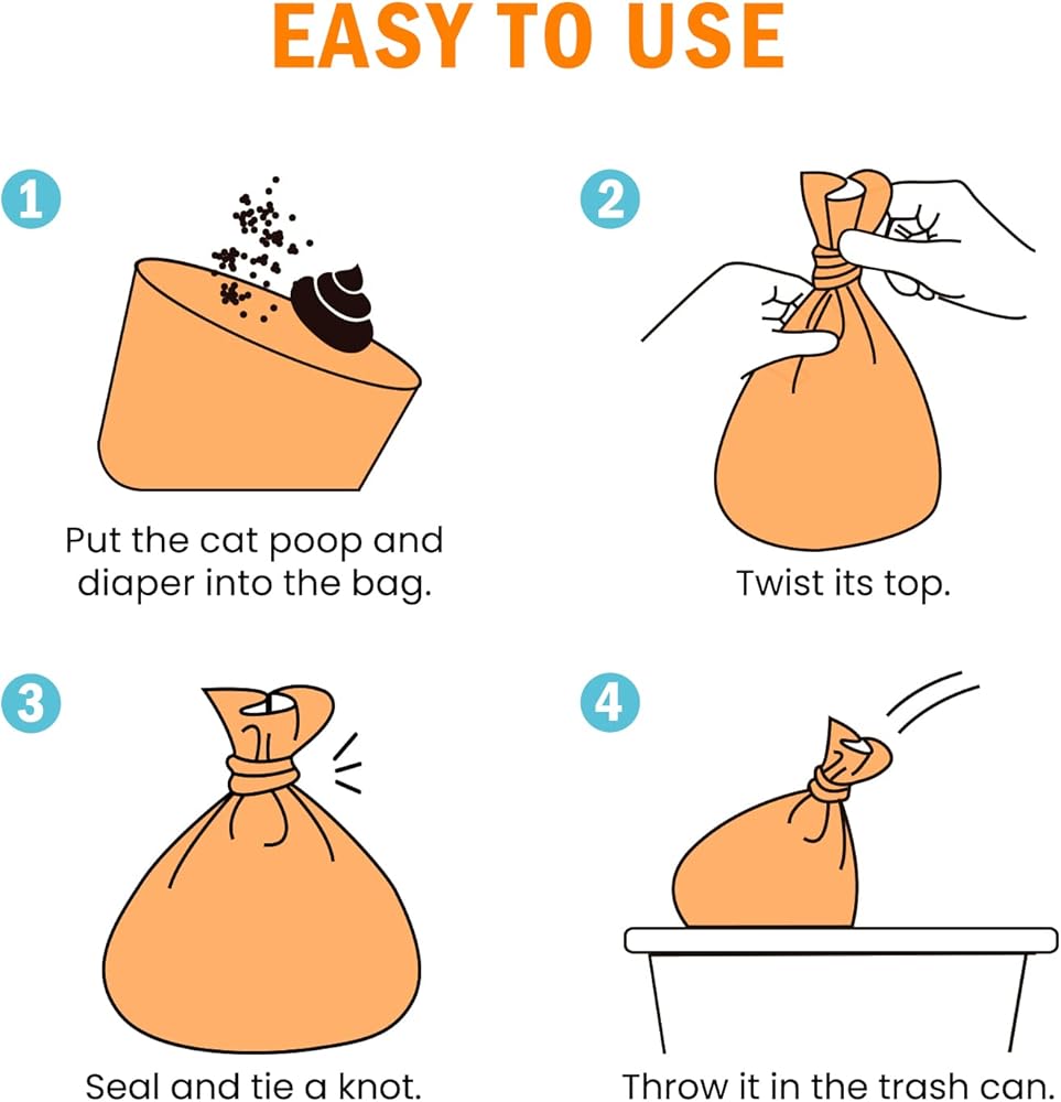 سهلة الاستخدام: معبأة في لفتين مما يجعلها مريحة للحمل معك. ما عليك سوى وضع سلة المهملات في كيس فضلات القطط، ولفها وربط العقدة لحبس الرائحة بسهولة عند المشي مع الحيوانات الأليفة.
