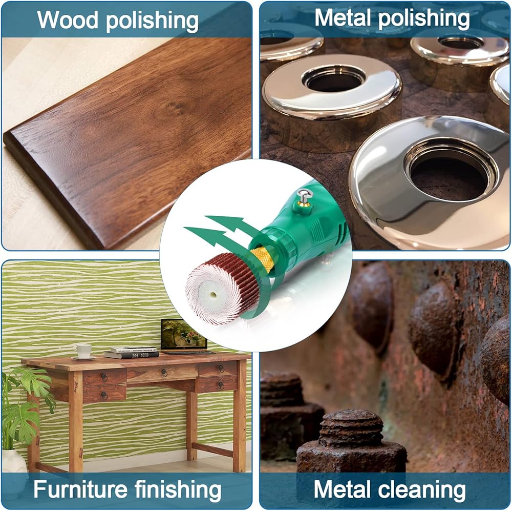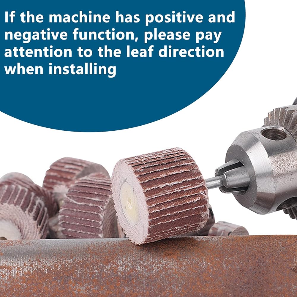These flap sanding wheels can be used to remove rust and paint, sand wood, and clean weld marks from metal.