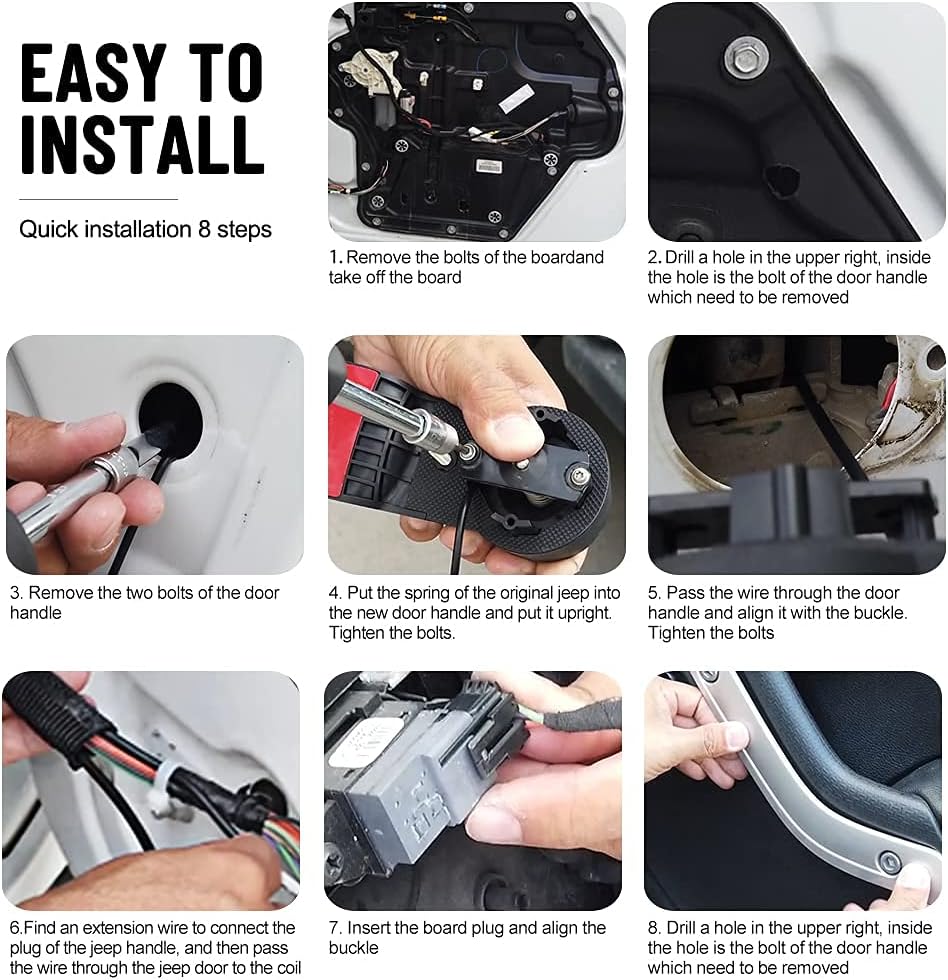 - ★سهلة التركيب: سهلة وسريعة التركيب، يتم إرفاق شريط لاصق مزدوج الوجه (استخدم زنبرك وقضيب المقبض الأصلي، فهي أكثر متانة وتناسب سيارتك الجيب)