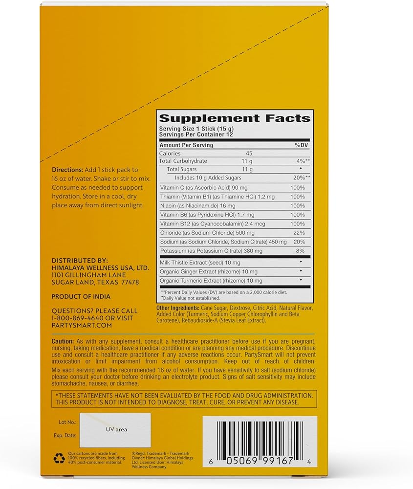 5 فيتامينات أساسية، 3 إلكتروليتات وأكثر: تساعدك إلكتروليتات بارتي سمارت على البقاء رطبًا والحفاظ على توازن السوائل الأمثل في جسمك باستخدام إلكتروليتات رئيسية بما في ذلك 1330 مجم من الصوديوم والكلوريد والبوتاسيوم. تحتوي كل عبوة إلكتروليت على 100% من RDA من فيتامينات C وB1 والنياسين وB6 وB12.