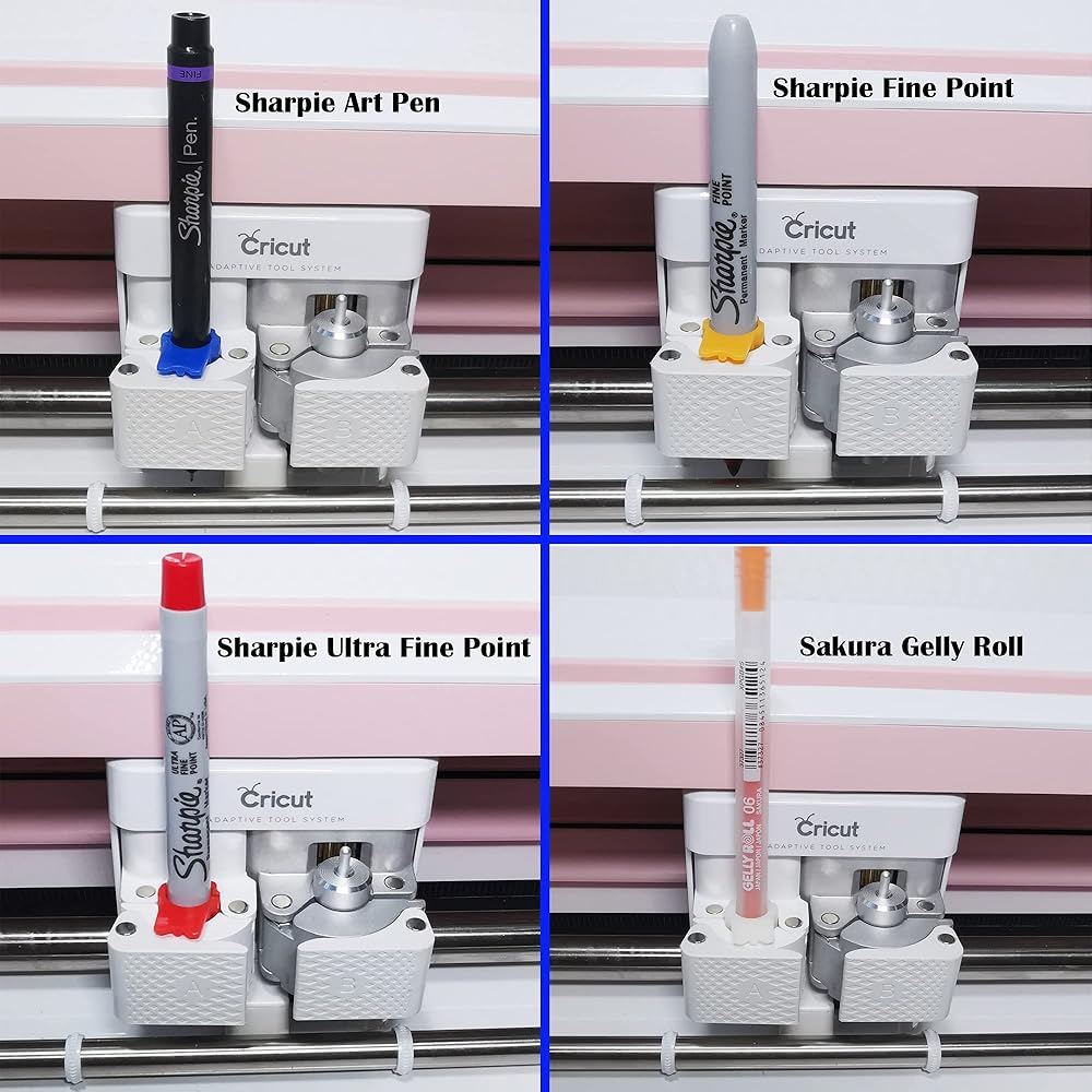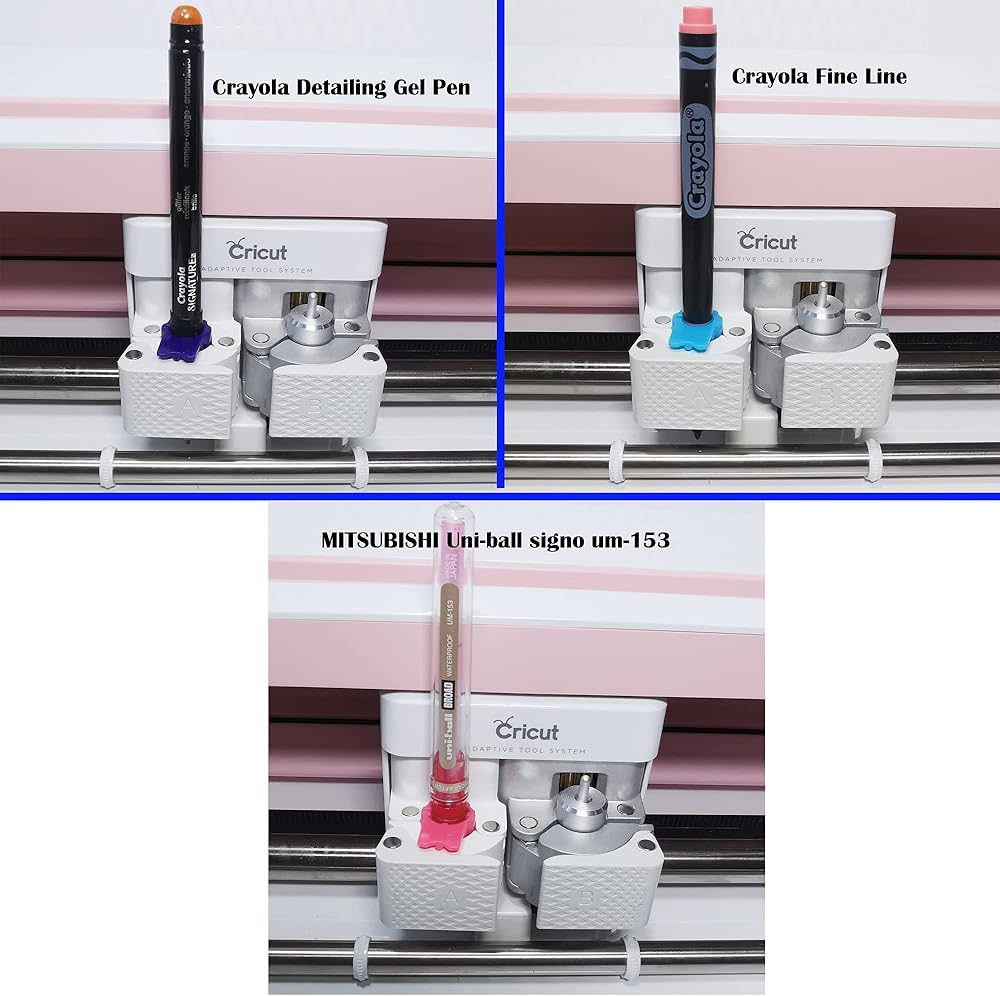 Replaces original Cricut stock pen holder to allow use of other most popular markers and pens in your (Explore Air/Air 2/Air 3/Maker/Maker 3) cutting machine for more versatility,(Note Not for Explore One and joy) [US Patent Pending 29/786,255]