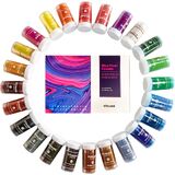 [عبوات مسحوق صبغة ميكا متعددة] - 24 لونًا فريدًا، كل لون بوزن 10 جم (0.35 أونصة)، مما يعطي قيمة أفضل مقابل أموالك؛ لا مزيد من البودرة المنسكبة في كل مكان مع مرطبانات الاهتزاز العملية المغلقة لدينا