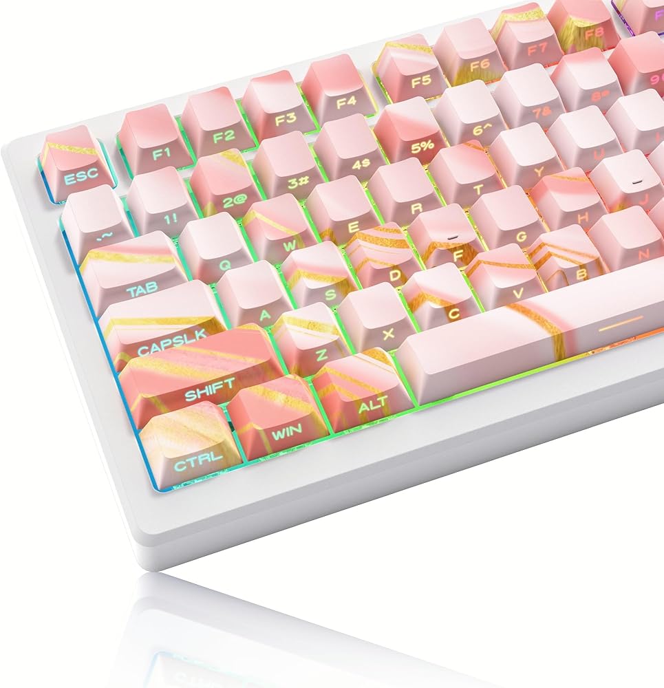 【مخصصة من خلال مجموعة أغطية المفاتيح】تستخدم أغطية المفاتيح المخصصة خطوطًا عريضة وعريضة للسماح بمزيد من الضوء للتألق من خلالها، مما يحسن رؤية المفاتيح الفردية ووضوحها.