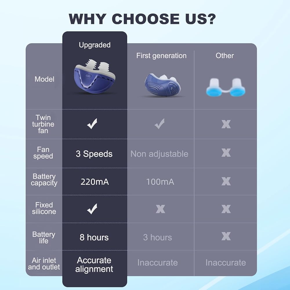 UPGRADED DESIGN - ZEROHILL anti snoring device adopts a dual vortex design, providing 3 adjustable wind speeds to meet different needs. Stop snoring device has a detachable silicone strap to prevent it from falling off during sleep