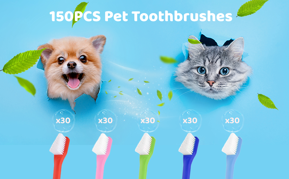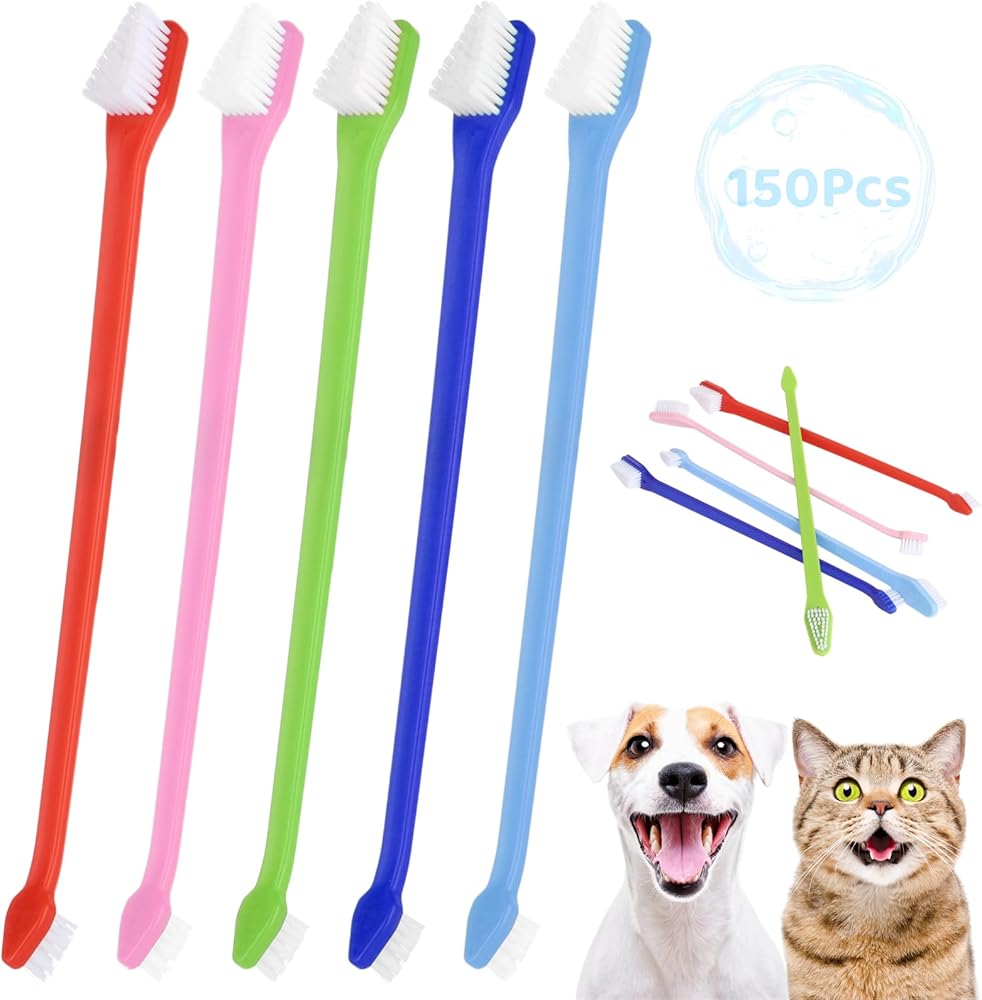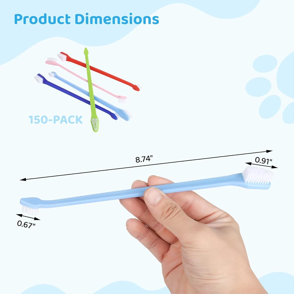 150 قطعة من فرشاة أسنان الكلاب ذات الرأس المزدوج من IKITEE، 5 ألوان، فرش أسنان مزدوجة الرأس للكلاب الكبيرة والصغيرة، والقطط، ومعظم الحيوانات الأليفة، وشعيرات ناعمة، ومستلزمات العناية بالفم وتنظيف الأسنان
