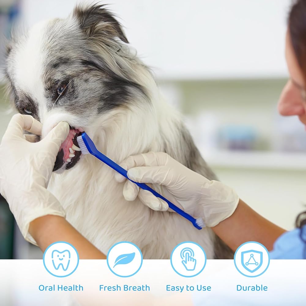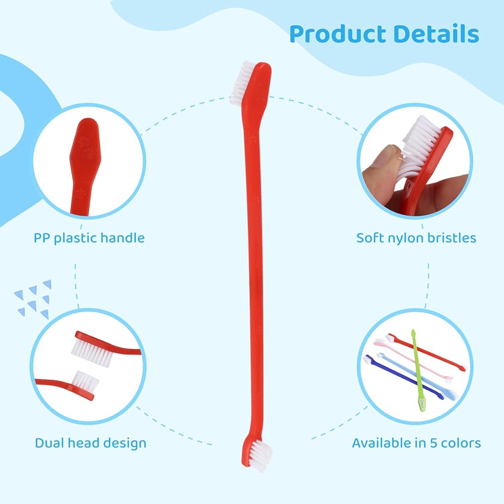 تنظيف لطيف وفعال: مصنوعة بمقبض من البولي بروبيلين وشعيرات نايلون ناعمة، فرشاة الأسنان هذه لطيفة على لثة وأسنان حيوانك الأليف. مثالية لإزالة البقايا على طول خط اللثة. انقعي الشعيرات في الماء الدافئ لاستعادة شكلها إذا اهترأت، مما يضمن الحصول على حل تنظيف دائم.