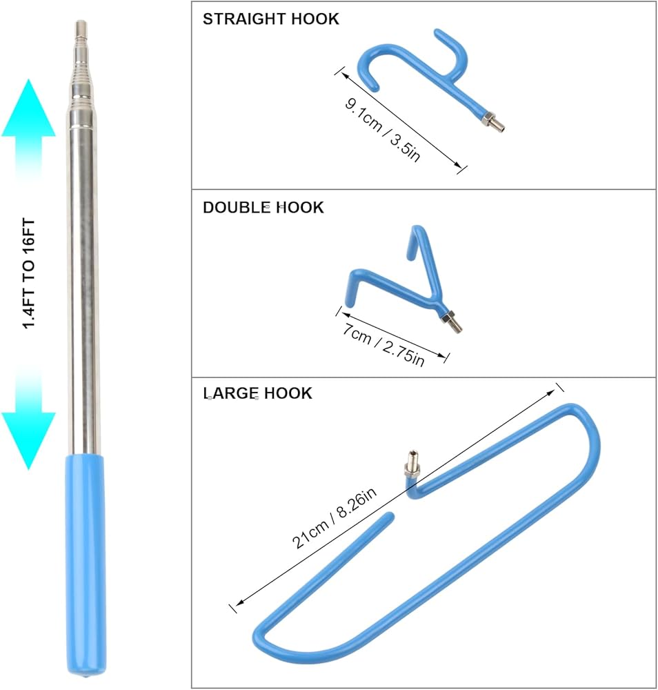 قضيب تلسكوبي محمول - يمكن طي أداة الإمساك حتى 16 بوصة وتمتد إلى 16 قدم كحد أقصى. من السهل حملها وتخزينها لتناسب حقيبة ظهرك.