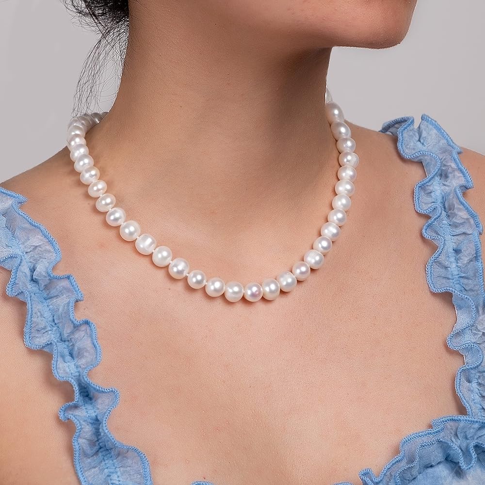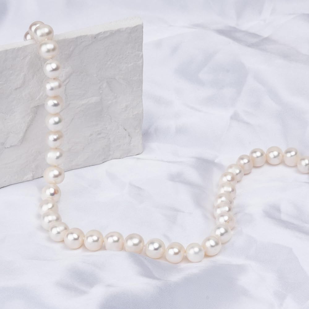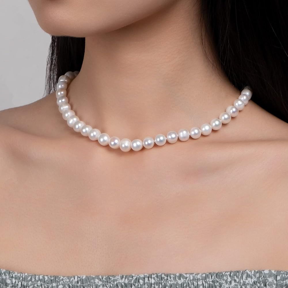 100% من لؤلؤ المياه العذبة المستزرع بجودة AAA، عقد من اللؤلؤ المنتقى بعناية ومؤمن بمشبك من الفولاذ المقاوم للصدأ.
