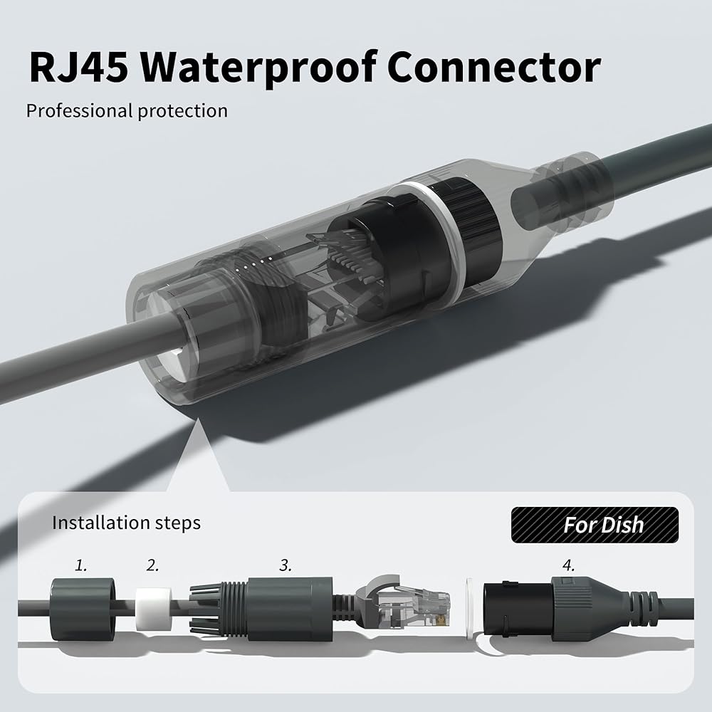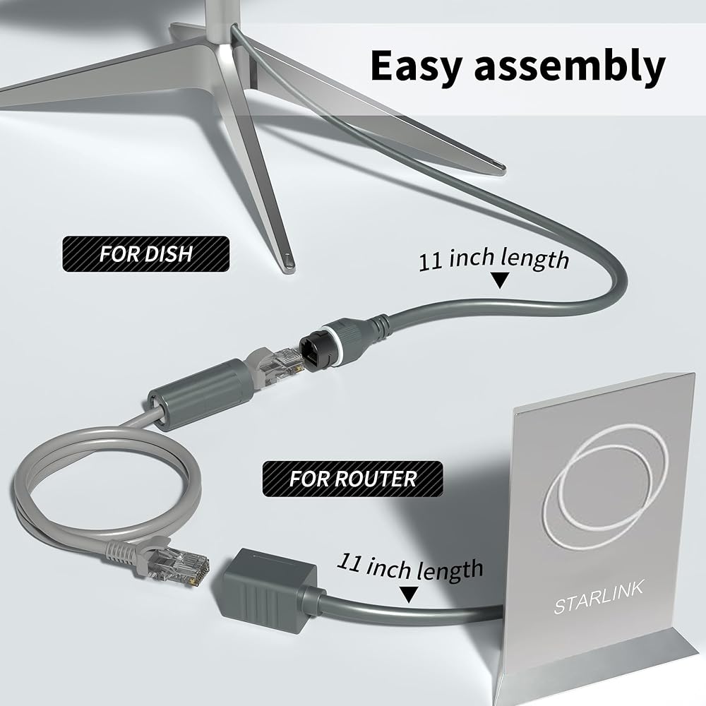 1. [التوصيل والتشغيل] --- تشتمل مجموعة الأقمار الصناعية للإنترنت Starlink مقاس 11 بوصة على قابس SPX ومحول RJ45 أنثى (T568B)، متوافق مع كل من الطبق وجهاز التوجيه. لا يلزم قطع أو تجعيد كابلات Starlink الأصلية.