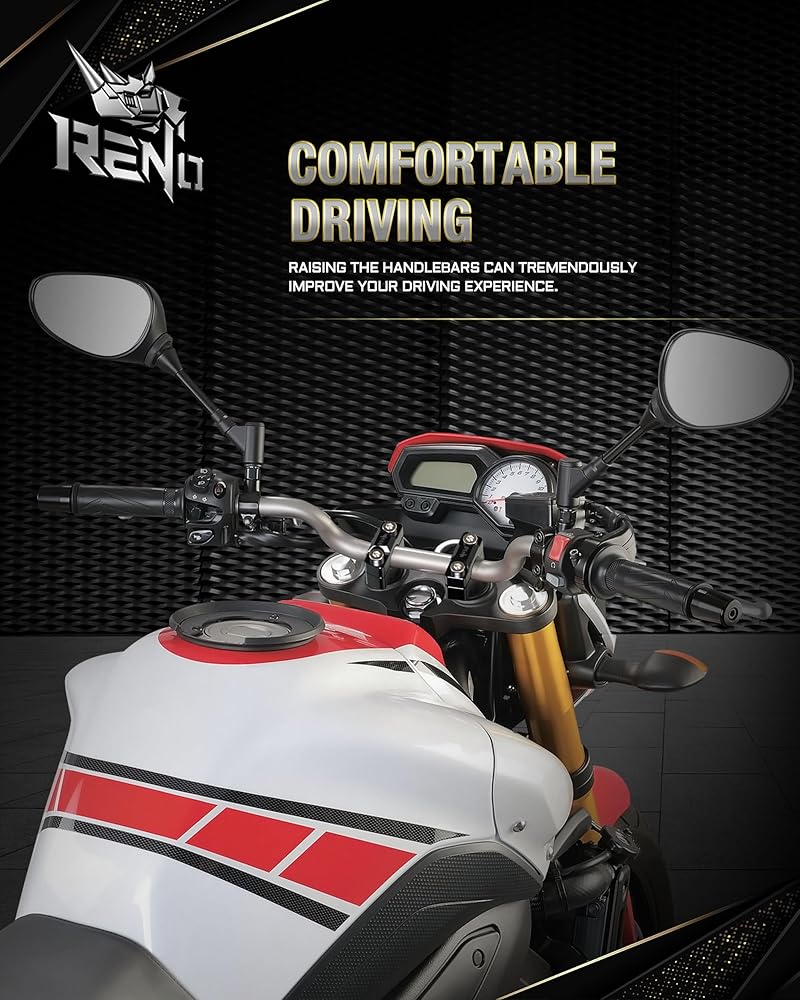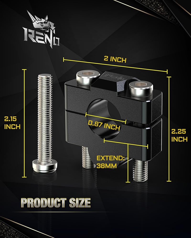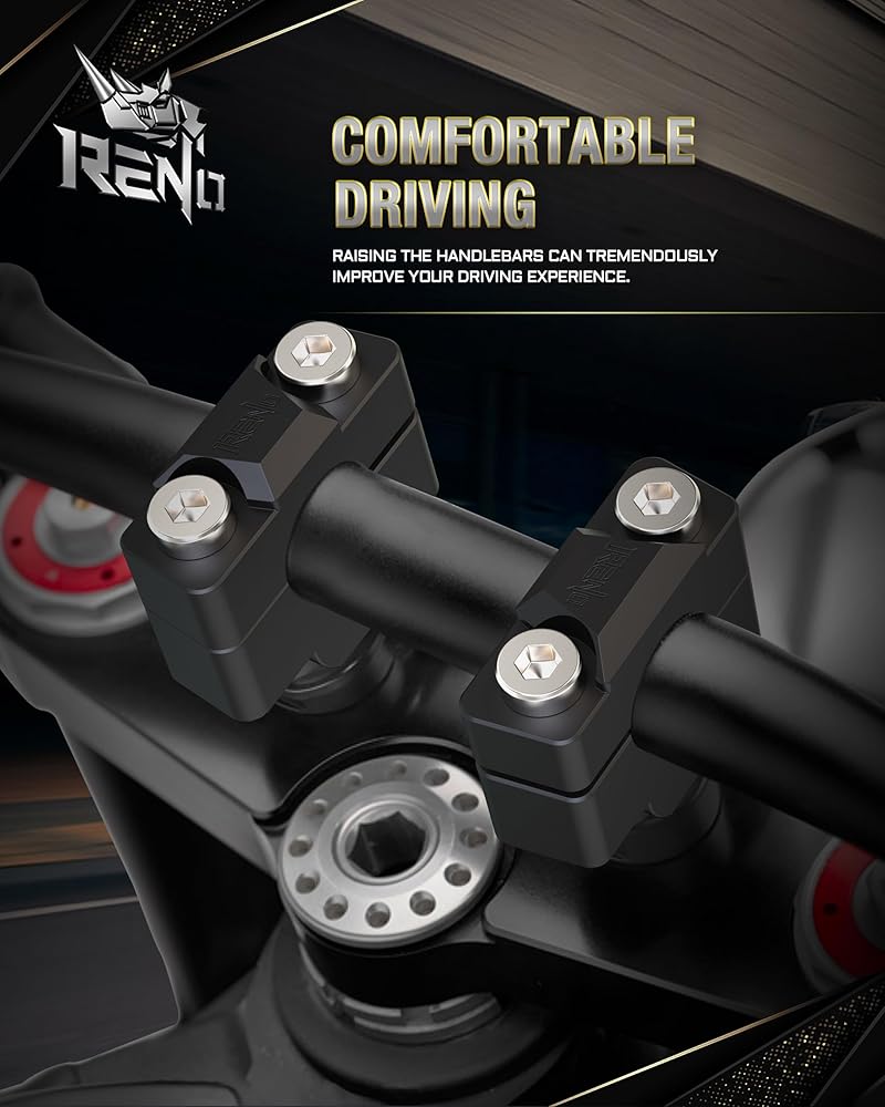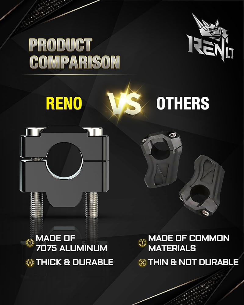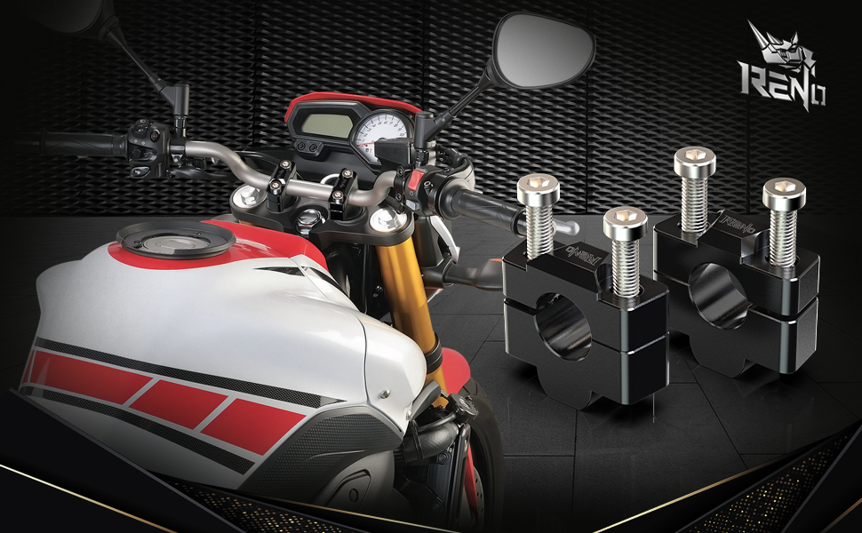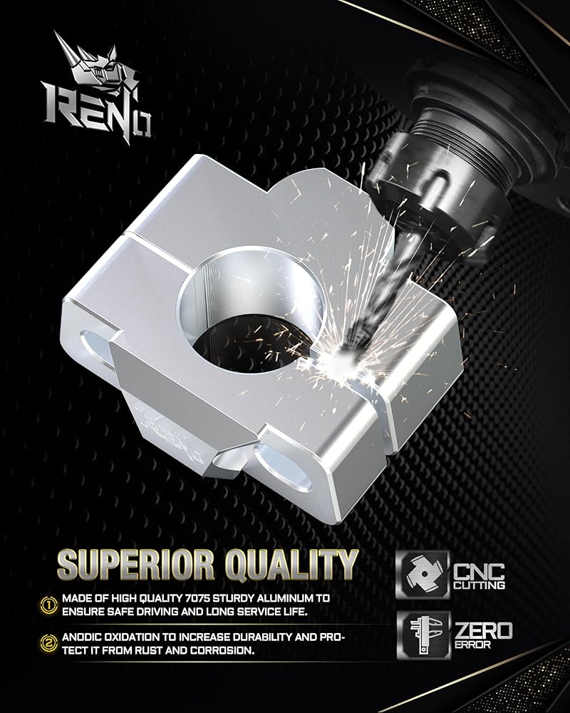 【جودة فائقة】مشبك رفع مقود الدراجة النارية من RENO مصنوع من الألومنيوم القوي 7075 عالي الجودة لضمان القيادة الآمنة وعمر الخدمة الطويل. الأكسدة الأنودية لزيادة المتانة وحمايتها من الصدأ والتآكل.