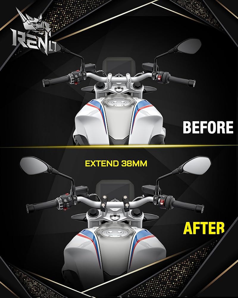 【قيادة مريحة】تسمح لك رافعات رينو بتغيير موضع المقاود بسهولة، أو سحبها لأعلى أو شدها للخلف. تعمل هذه الرافعات على زيادة ارتفاع المقود بمقدار 38 ملم لتمنحك وضعية ركوب أكثر راحة.