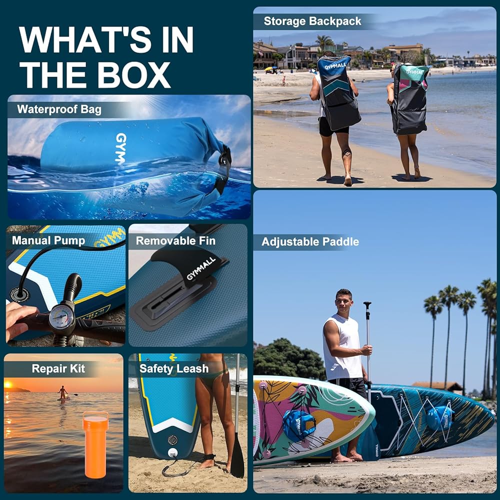 [مجموعة كاملة] يأتي لوح التجديف GYMMALL مع كل ما تحتاجه لتجربة لا تنسى على الماء. تشتمل الحزمة الشاملة على مجداف قابل للتعديل، ومضخة يدوية، وحقيبة مقاومة للماء، وزعانف، وحقيبة ظهر للتخزين، وحزام كتف، ومجموعة إصلاح. مع ملحق سوب الخاص بنا، انطلق في مغامرة ركوب الأمواج في أي وقت وفي أي مكان دون أي تحضير إضافي. استمتع بتجربة التجديف المثالية مع ألواح التجديف القابلة للنفخ عالية الجودة.