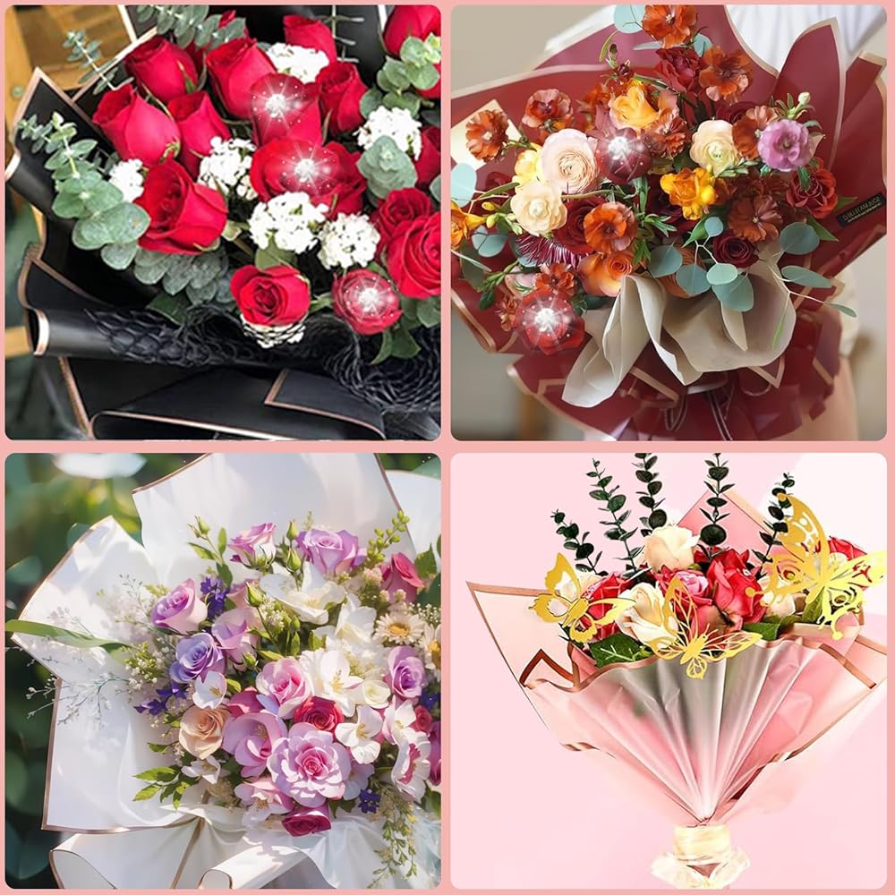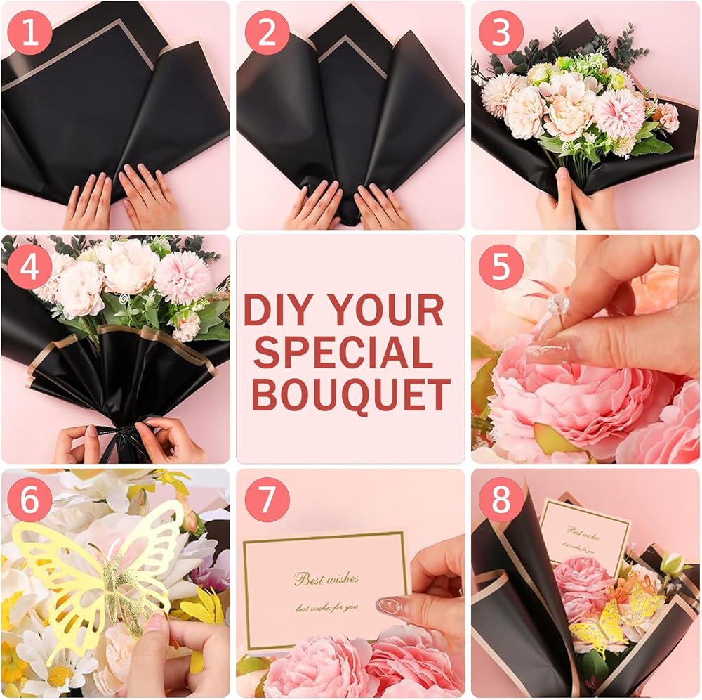 【مستلزمات إكسسوارات باقة الزهور الرائعة】تم تصميم ورق التغليف الزهري بحدود ذهبية ونمط شفاف. يحتوي ورق الباقات الكوري الخاص بنا على 6 ألوان مختلفة لتختار من بينها. يمكن طي أجنحة الفراشة الذهبية لإنشاء تأثير ثلاثي الأبعاد بسهولة. يمكن إدخال دبابيس الباقة مباشرة في مركز الزهرة. تتميز الأشرطة أيضًا بمظهر رقيق، ويمكنك استخدامها لتأمين العبوة وربط باقة الزهور الجميلة. يمكنك كتابة رغبتك لصديقك في بطاقات الهدايا. إكسسوارات الباقة هذه تجعل باقتك أكثر جاذبية!