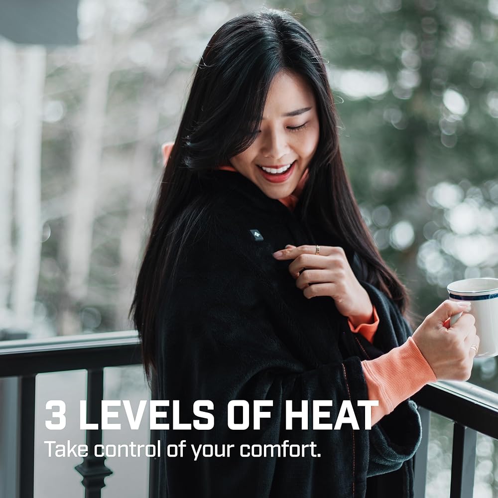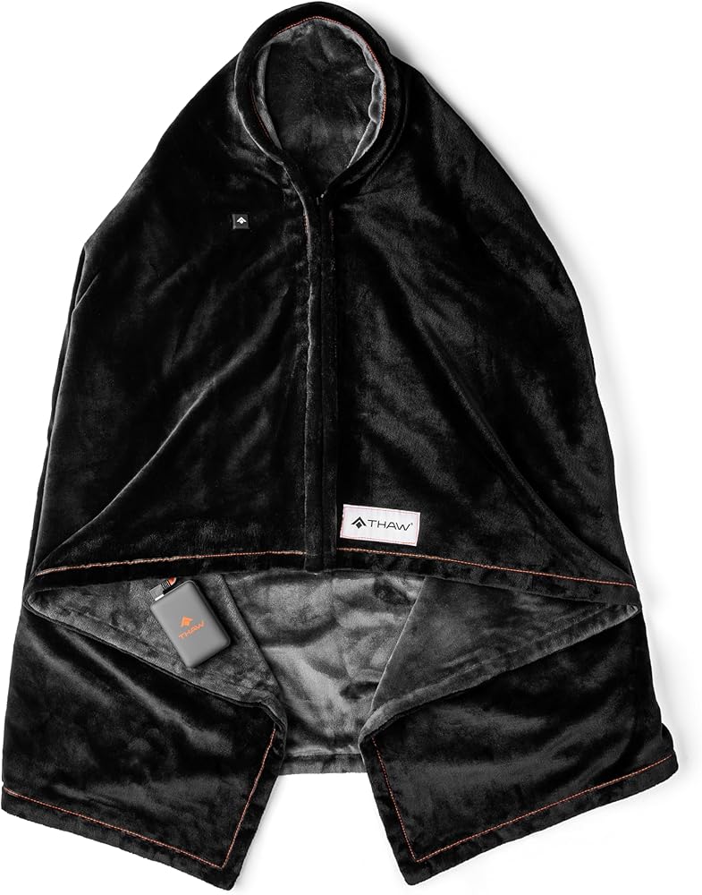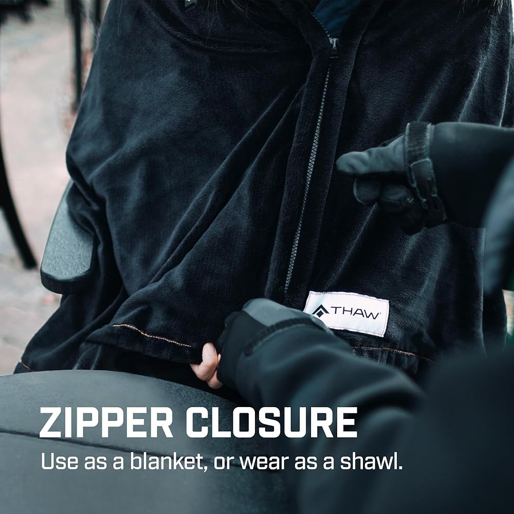 THAW Rechargeable Heated Wrap with Zipper Closure to be Worn or Use and Share as a Blanket or Wrap