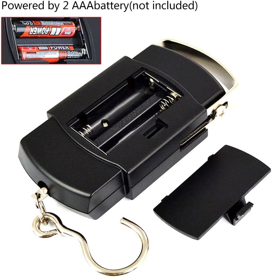 Measures up to 110 lbs/50 kg,division 0.01lb/0.01kg. Backlit LCD display powered by 2 AAA batteries (not included)