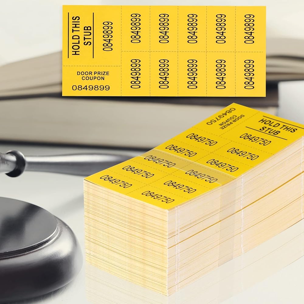 Package includes: 500 yellow Chinese Auction Ticket Sheets, enough for you to use in daily life or in any event. They are numbered differently which is very helpful.