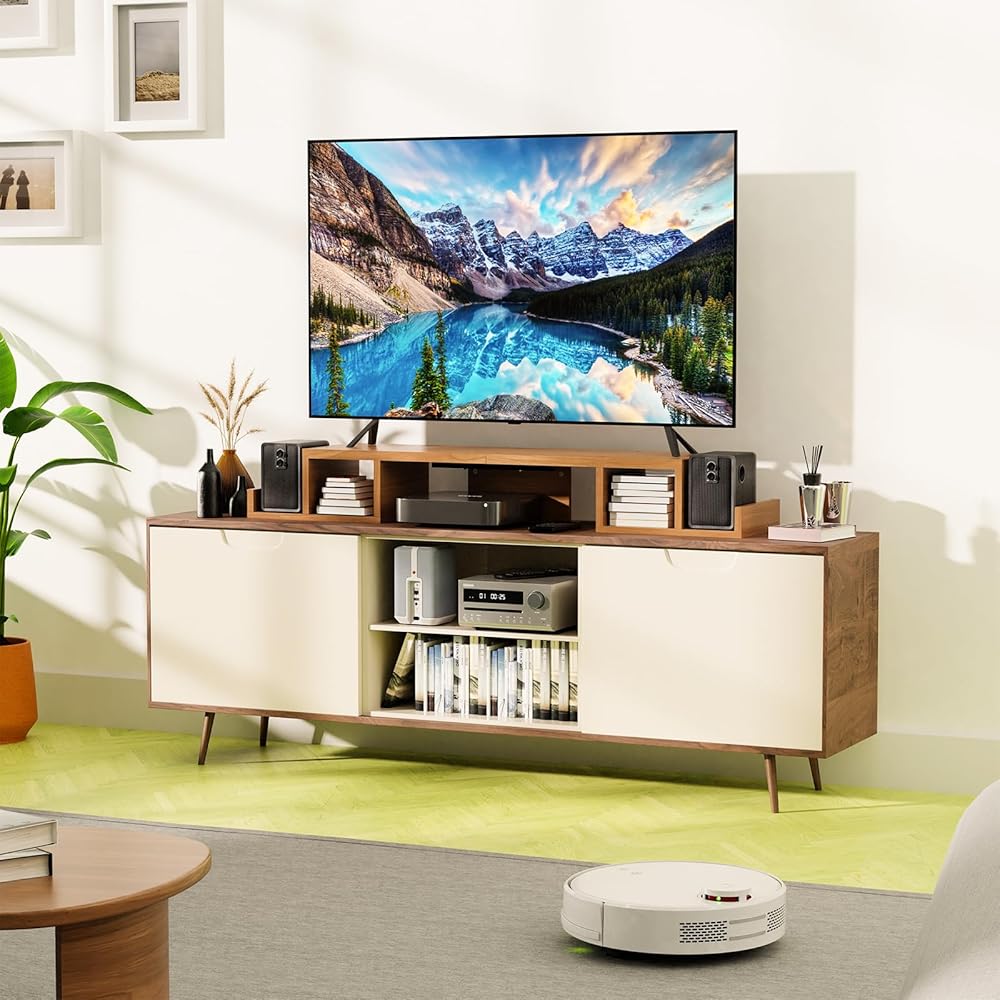【حامل شاشة متعدد الوظائف】الطول الجانبي 4.5 بوصة، يمكن أن يحمل PS5، لوحة الألعاب، المساحة المركزية 14.6 بوصة طول × 5.25 بوصة ارتفاع يمكن تخزين لوحة المفاتيح والماوس وما إلى ذلك، مساحة تخزين العلبة 6.3 بوصة طول × 4.75 بوصة ارتفاع يمكن تخزين أقراص الألعاب، صغيرة ستيريو، الخ.