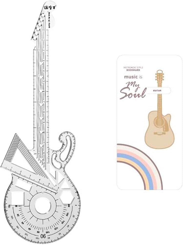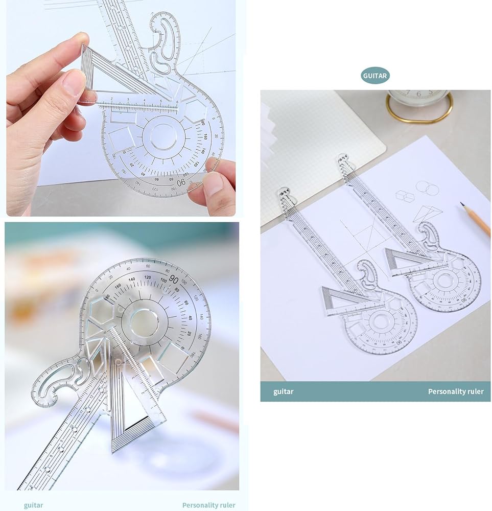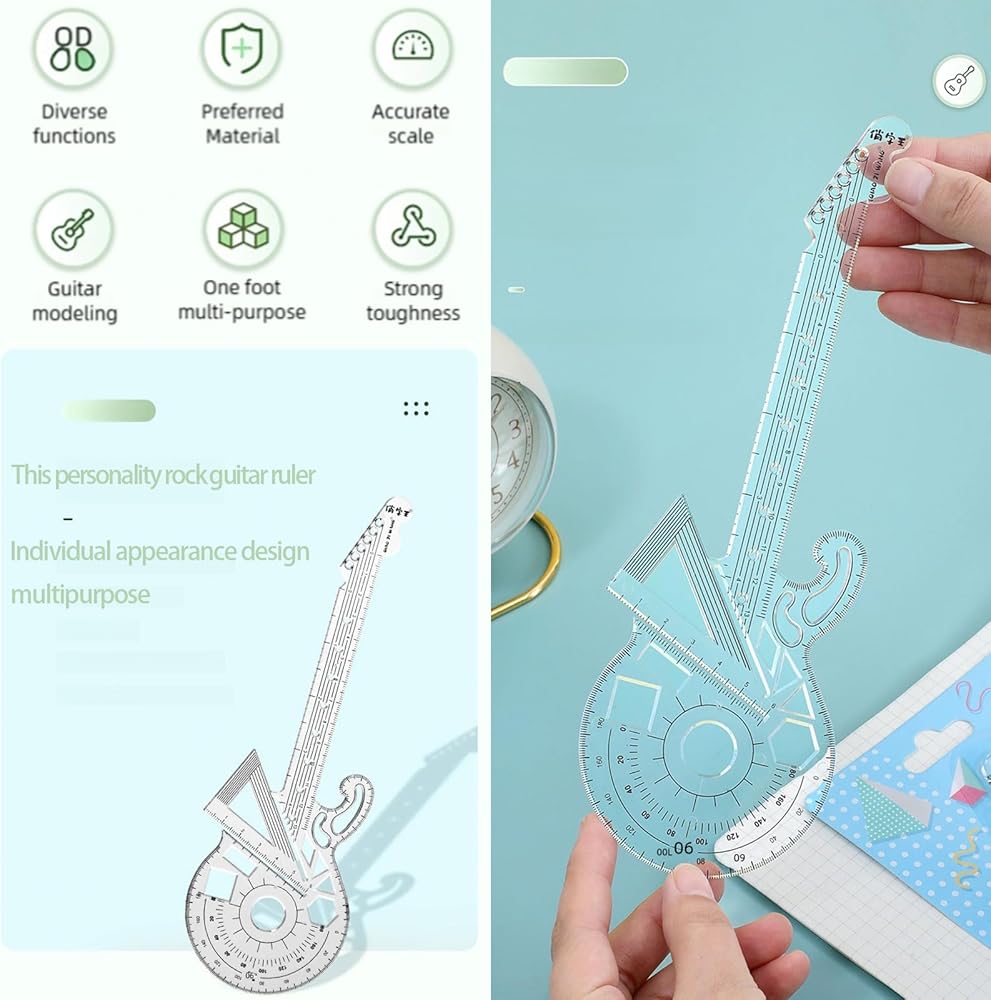 【Rock guitar shape ruler】 In addition to basic shapes like lines, circles, rectangles, and triangles, our ruler also features the ability to draw cylinders, cones, cubes, parabolas, the golden section ratio, angular bisectors, vertical lines and other functions waiting for you to discover.
