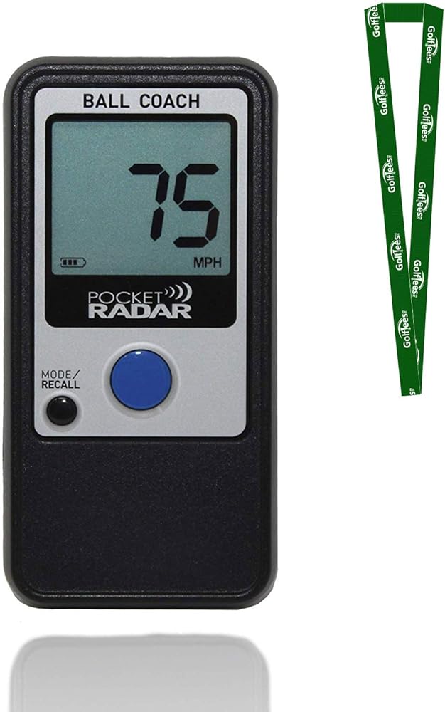 The pro-level Ball Coach is a speed training tool and radar gun for player development through one-on-one coaching or self-guided drills and hands-free operation keeps it simple. By making crucial results like hitting power, pitching speeds, serving speeds, shooting speeds and throwing speeds instantly visible, the Ball Coach is the easy way to get better faster. The Ball Coach is the ideal choice for measuring ball speeds in baseball, softball, volleyball, tennis, lacrosse, hockey, soccer and football. Named Best of Show at the 2014 American Baseball Coaches Association national convention, the Ball Coach is the first pro-level radar gun specifically designed for coaching and training. Powerful features include hands-free Constant-On Mode (put all your focus on coaching and training, not the radar gun), easy automatic triggering (simply hold button down and release when speed appears) and built-in memory with the previous 25 speeds (keep track and review training lessons). Weight: Less than 3.7 ounces without batteries / 4.5 ounces with batteries. Battery life with AAA alkaline batteries (included): Over 2,000 readings in user-triggered mode or over 1 hour in Constant-On Mode. Battery life with rechargeable AAA NiMH batteries (not included): Over 4,000 readings in user-triggered mode or over 2 hours in Constant-On Mode. Automatically powers off after 30 seconds in user-triggered mode or powers off after 5 minutes of no speed readings in Constant-On Mode. Product includes: soft-shell belt holster case, wrist strap, 2 AAA alkaline batteries, Quick Start Guide and 2 year warranty. Works with standard camera tripods using a smart-phone tripod mount (not included). Comes complete with a Golf Tees Etc detachable lanyard with attaches to the bottom of your Pocket Radar.