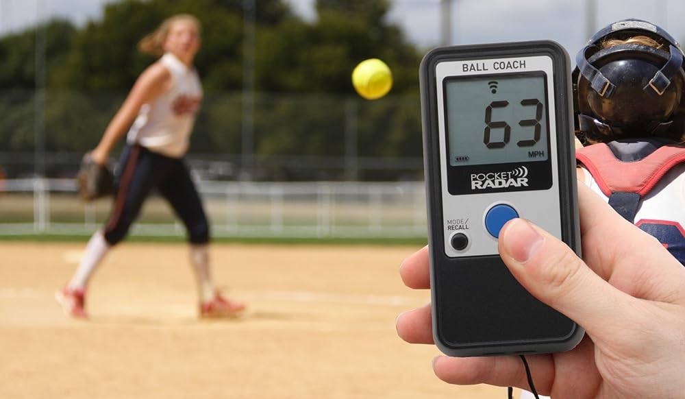 • Deep memory stores previous 25 speed readings. Range: 120 feet on a baseball or softball and 150 feet on a volleyball.