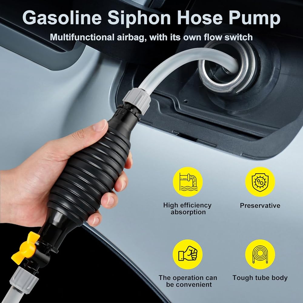 • 【Multi -purpose】: Siphon Pump for Gasoline is suitable for gasoline, oil, diesel, water and other common liquids. It is very suitable for emergency gas conveying and is also suitable for fish tank water. Not suitable for drinking water and edible oil.