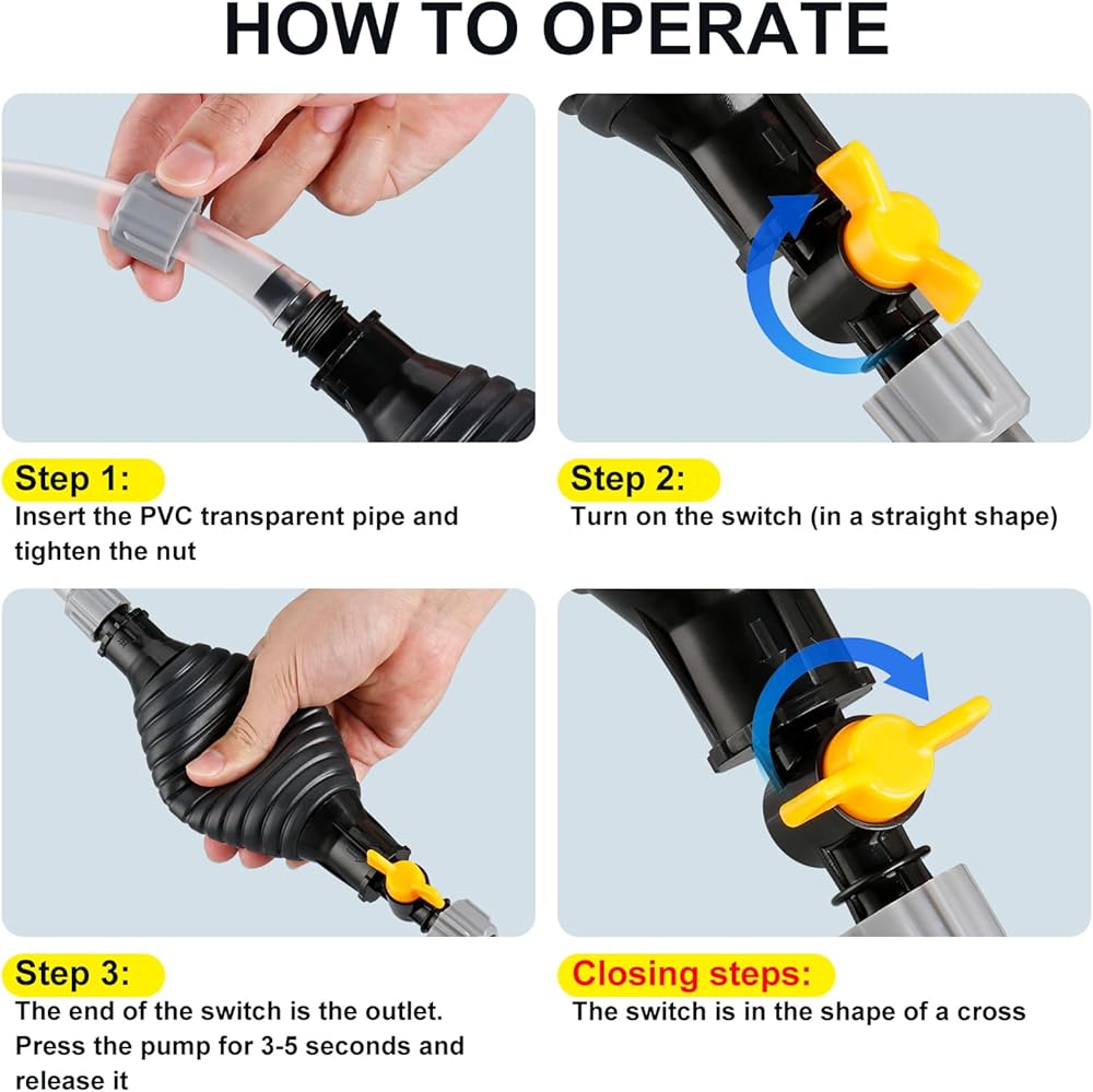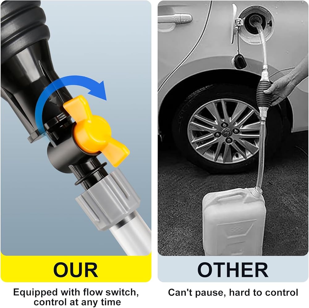 • 【High -efficiency liquid siphon】: Siphon Pump for Gasoline has an innovative flow valve and a knob fixed buckle to ensure fast and worry -free liquid transfer. Use the rubber manual pump to design the effective rainbow suction of various liquids.Fuel pump high -flow hose and large -caliber ball pumps can ensure faster pumping speed, which is very suitable for easily transferring gasoline, gasoline and other liquids.