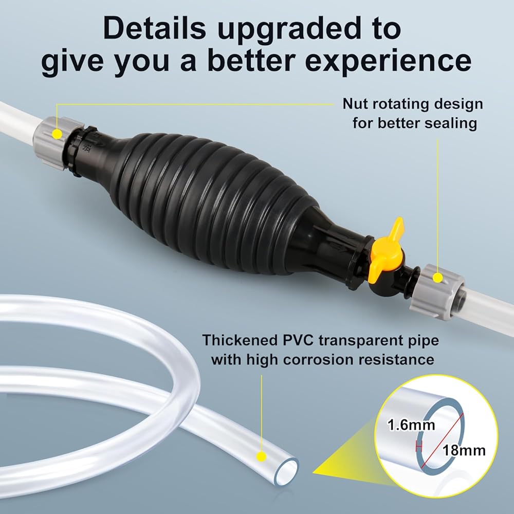 • 【Hoster pipe upgrade】: Unlike most gas siphon pump for gasoline in the market, transparent pipes have been upgraded to 18 mm diameter, which is large and can be pumped faster and easier. PVC high -quality materials are more resistant to corrosion and visible tube.