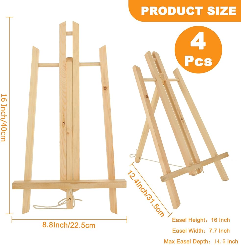 WOPPLXY 4 عبوات من الحامل الخشبي، حامل حامل على سطح الطاولة مقاس 16 بوصة للوحات الرسم والفن والحرف اليدوية، حامل حامل الفنان لعرض سطح الطاولة لعرض الحامل الخشبي الصغير حامل علامة الصورة المحمولة