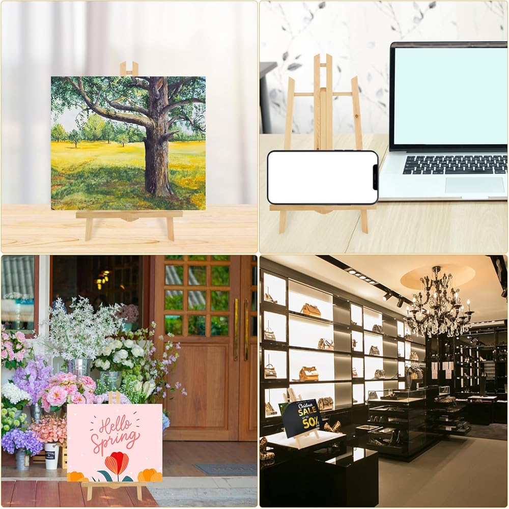 WOPPLXY 4 Pack Wooden Easel, 16 Inch Tabletop Easel Stand for Painting Canvases, Art, and Crafts, Tabletop Display Artist Easel Stand for Display Wooden Small Easels Portable Photo Picture Sign Holder