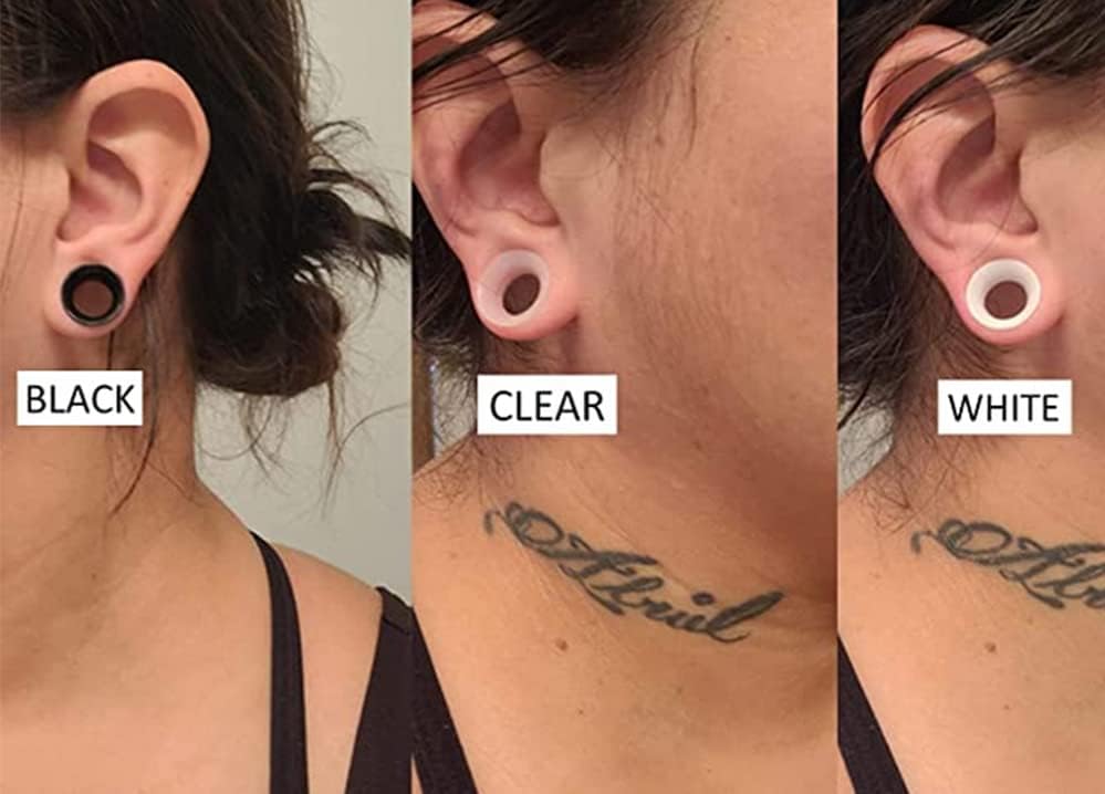 • المواد: مصنوعة من السيليكون، متينة ومرنة. السيليكون هو المادة الأكثر راحة لشحمة الأذن الممدودة. خفيفة الوزن وسهلة التركيب.