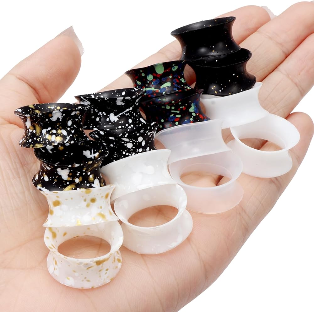 • 8 أزواج من سدادات قياس أنفاق الأذن المصنوعة من السيليكون الرفيعة للغاية، نفس المقاسات في المجموعة تحتوي على 6 ألوان (شفاف وأبيض وأسود)، كل لون زوج واحد، تجربة شراء اقتصادية وعملية.
