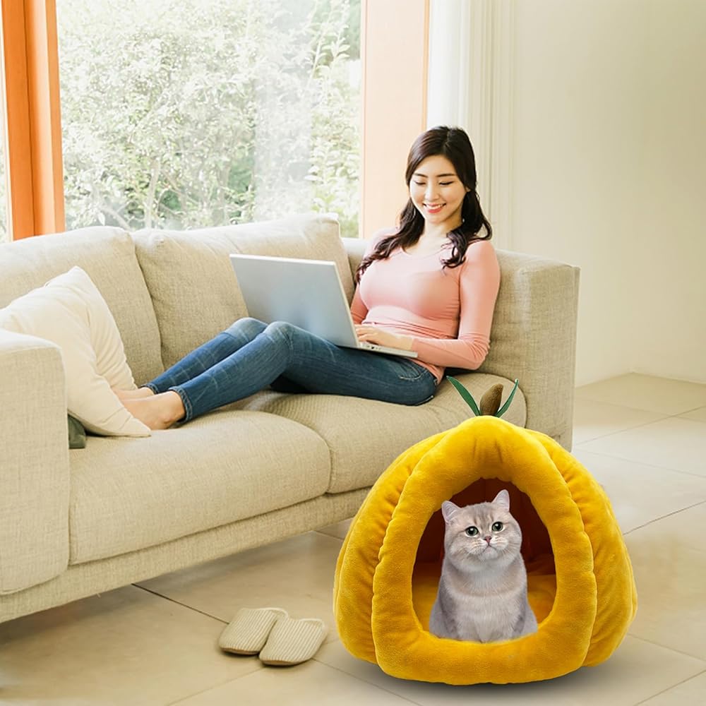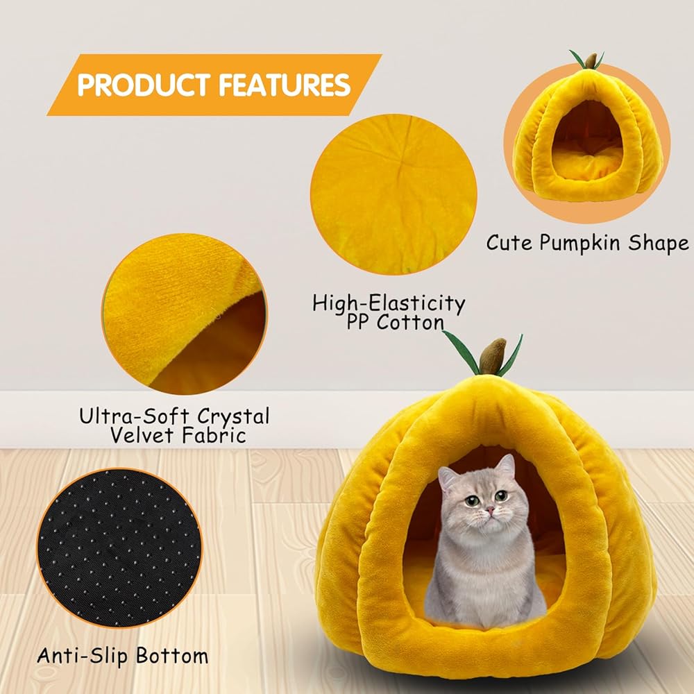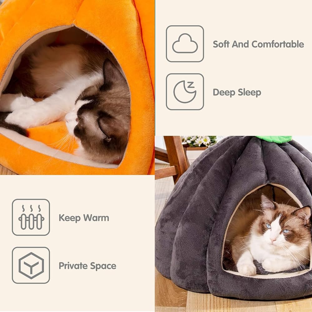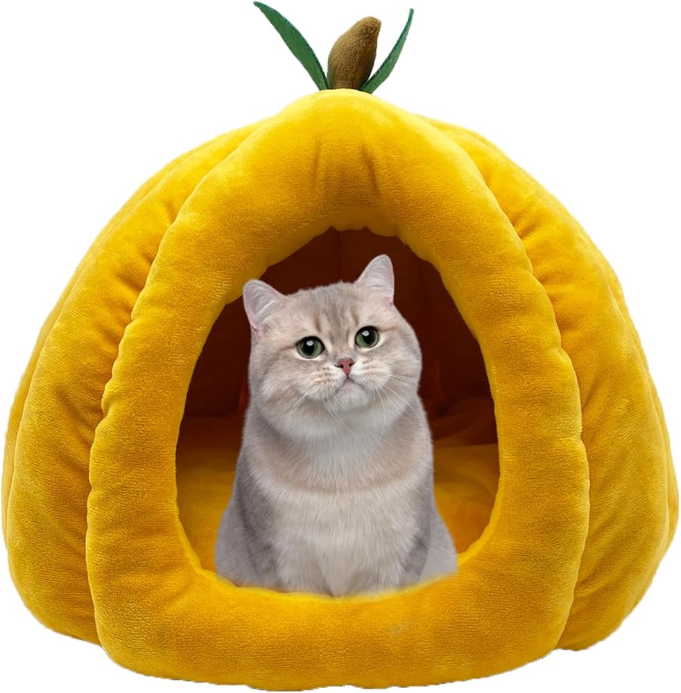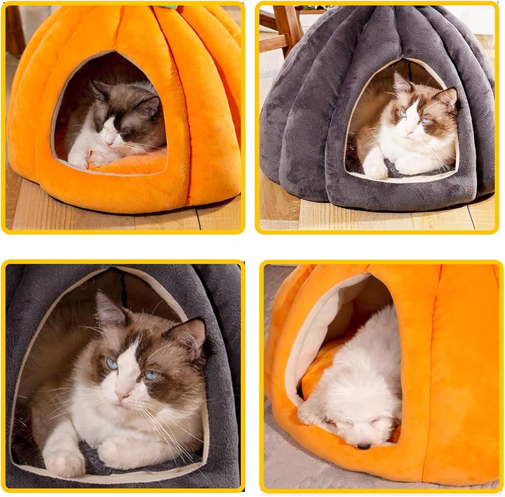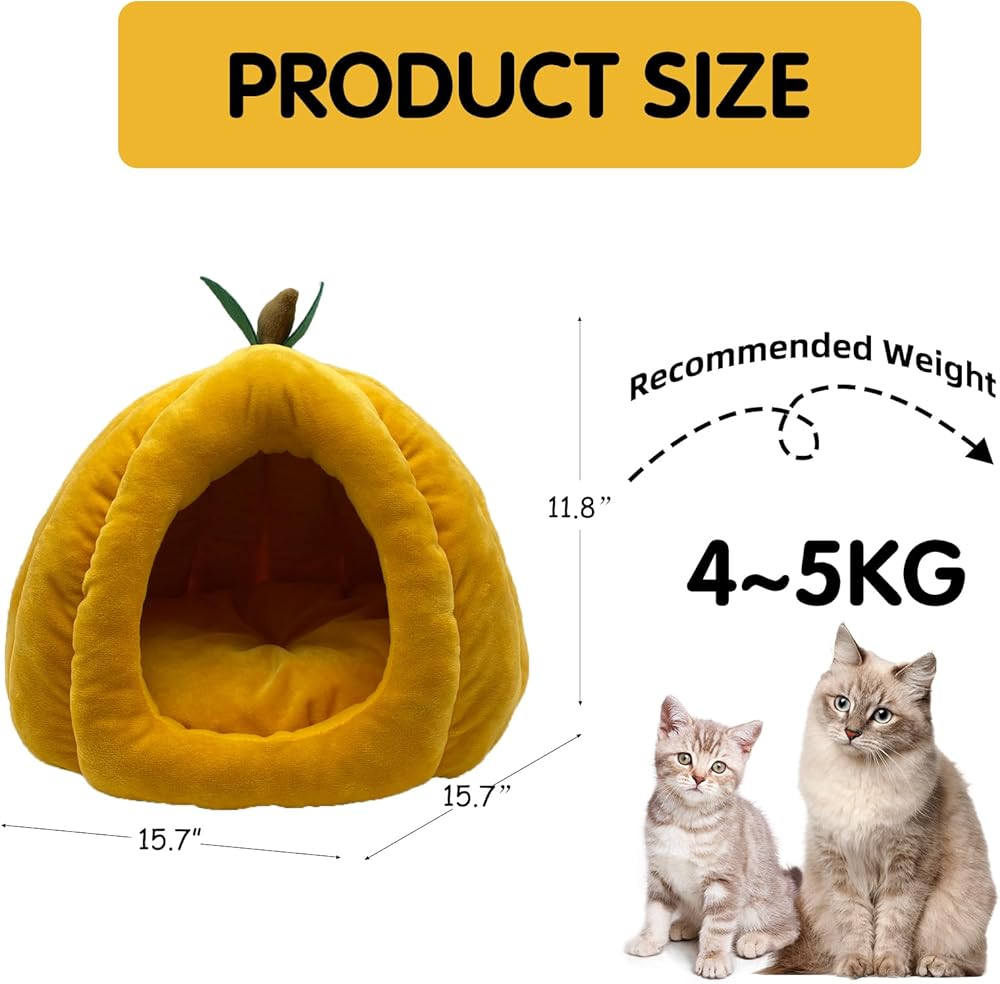 【Cute Shape】The cat house is a three-dimensional pumpkin shape. The lovely shape can be well integrated whether it is placed indoors or in a cage. Small animal bedding nest is suitable for rabbits, cats, guinea pigs, ferrets, chinchillas, squirrels and other small animals. It is recommended for small animals within 8 lb.
