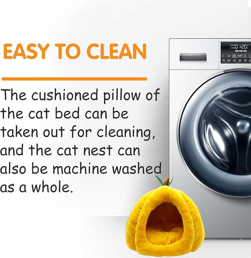 【Sturdy & Washable 】The cat nest is very sturdy and filled with a highly elastic sponge, so you don't have to worry about it collapsing. The bottom of the cat bed is non-slip and can be stably placed on the ground. There is a detachable cushion in the cat bedding nest, which is convenient for cleaning. It can be machine washed as a whole, providing a comfortable and clean nest for small animals.