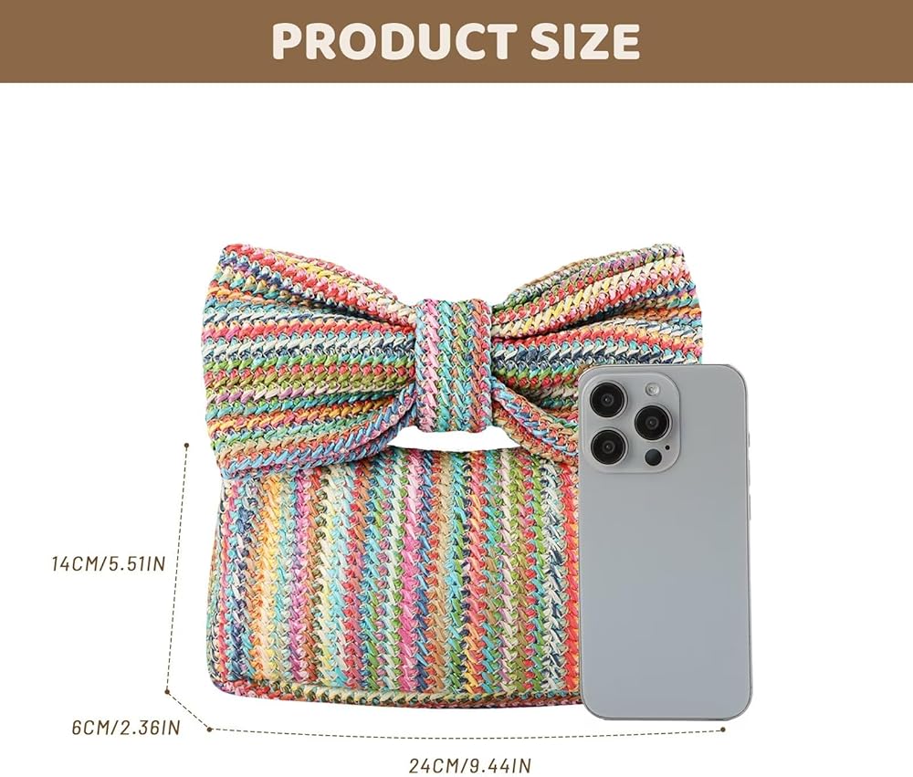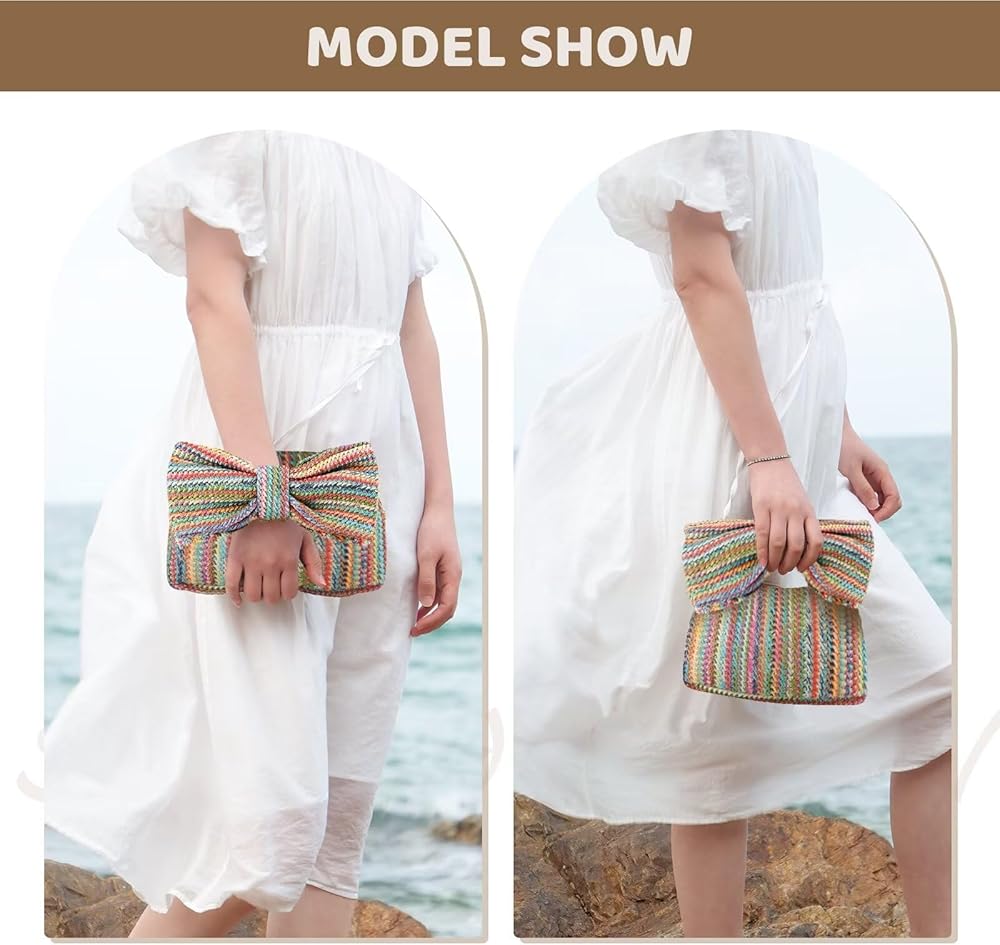 محفظة على شكل فيونكة منسوجة يدويًا: مصنوعة يدويًا من القش الطبيعي، تتميز حقيبة اليد القوسية لدينا بنسيج حرفي معقد، مما يوفر مزيجًا من الأناقة والاستدامة.