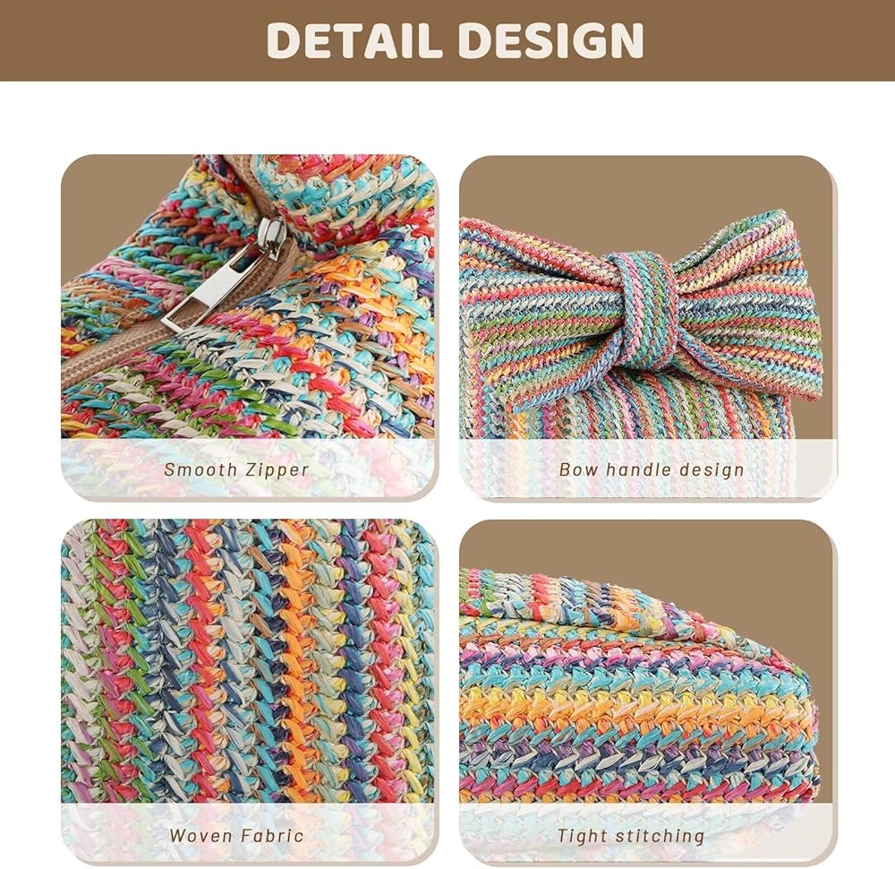 أنيقة وعملية: ليست مجرد فكرة عصرية، بل توفر حقيبة اليد المصنوعة من القش الخاصة بنا عملية بفضل تصميمها الداخلي الواسع، وهي مثالية لتخزين هاتفك وأحمر الشفاه وغيرها من الضروريات. مثالي للحفلات أو حفلات الزفاف أو السهرات.