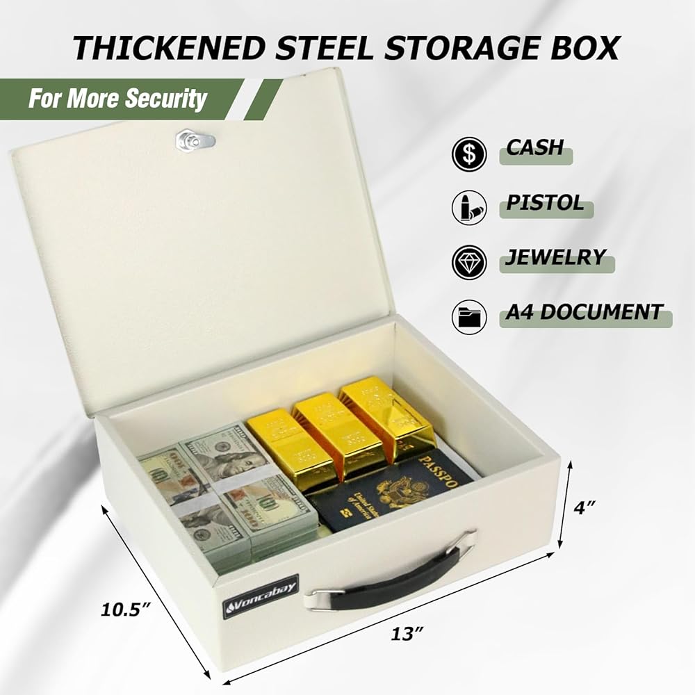 [صندوق النقود 0.33 قدم مكعب واسع بما يكفي ليناسب مستندات A4]: تتميز صناديقنا الآمنة المقاومة للحريق للمنزل بأبعاد خارجية تبلغ 13 × 10.8 × 4 بوصات وأبعاد داخلية تبلغ 11.8 × 9.8 × 3.5 بوصة، مما يجعلها مناسبة تمامًا لـ A4 وثائق. صندوق المستندات المقاوم للحريق هذا متعدد الاستخدامات بما يكفي لاستخدامه في غرفة النوم أو المكتب أو السيارة أو خزانة التخزين، كما أنه مثالي أيضًا للقيام برحلات التخييم والسفر والأنشطة الخارجية الأخرى.