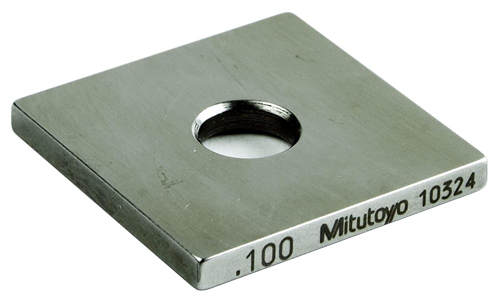 This Mitutoyo grade 0 square gage block is made of steel, has its nominal length engraved in inches, and is supplied with a Mitutoyo inspection certificate that states that the block meets American Society of Mechanical Engineers (ASME) B89.1.9-2002 grade standard for flatness, length, parallelism, and surface finish. The inspection certificate specifies the deviation of the individual block from its nominal length. Gage blocks are commonly used to calibrate fixtures and precision instruments in workshop, inspection, and dimensional metrology applications, to inspect tools such as mounting tools, cutters, fixtures, and mechanical parts, and in the gage manufacturing process itself.