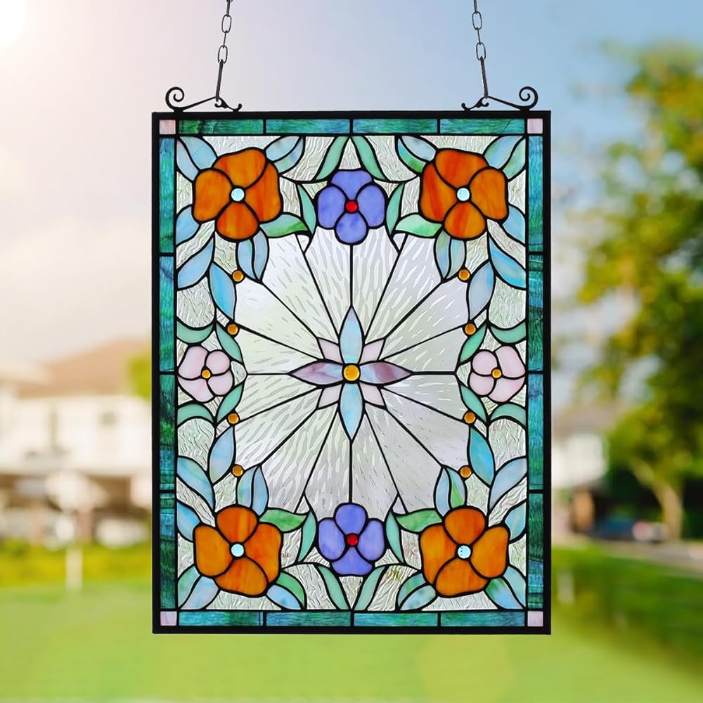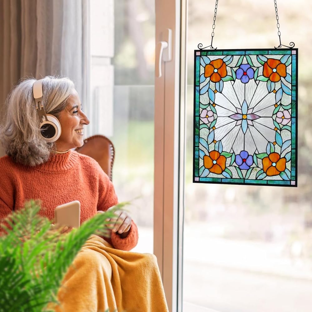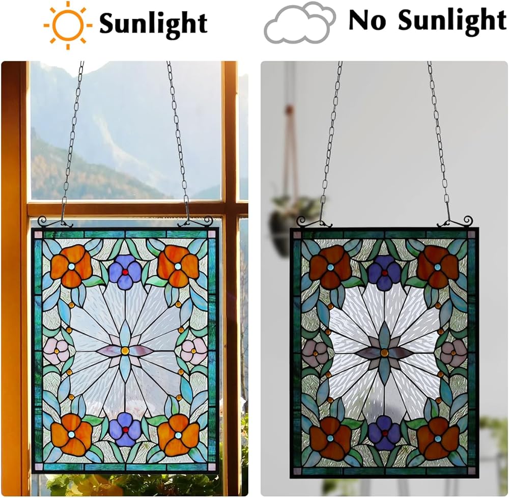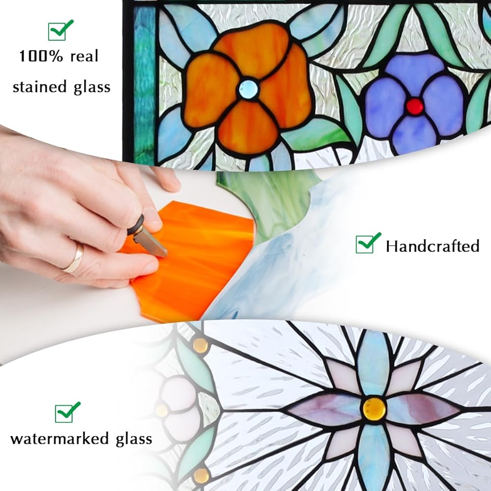 Kleeglee زجاج ملون للتعليق على النوافذ، لوحات نوافذ زجاجية ملونة كبيرة مصنوعة يدويًا لتزيين النوافذ...