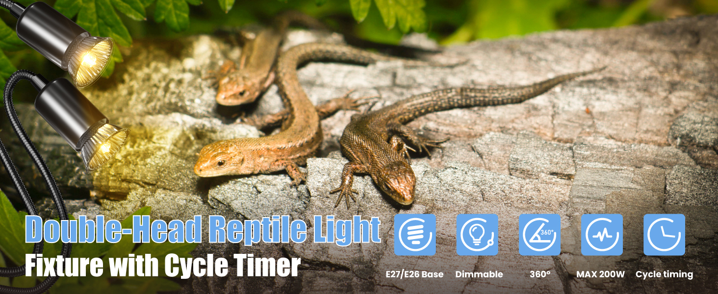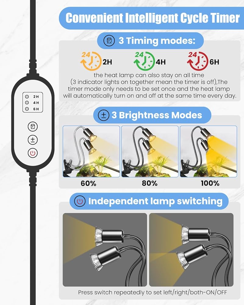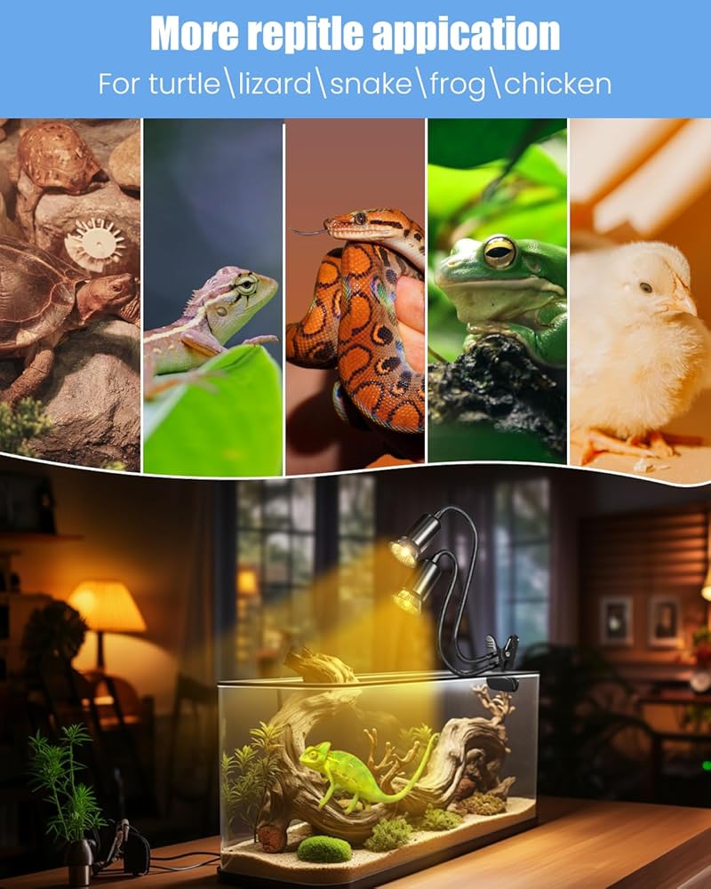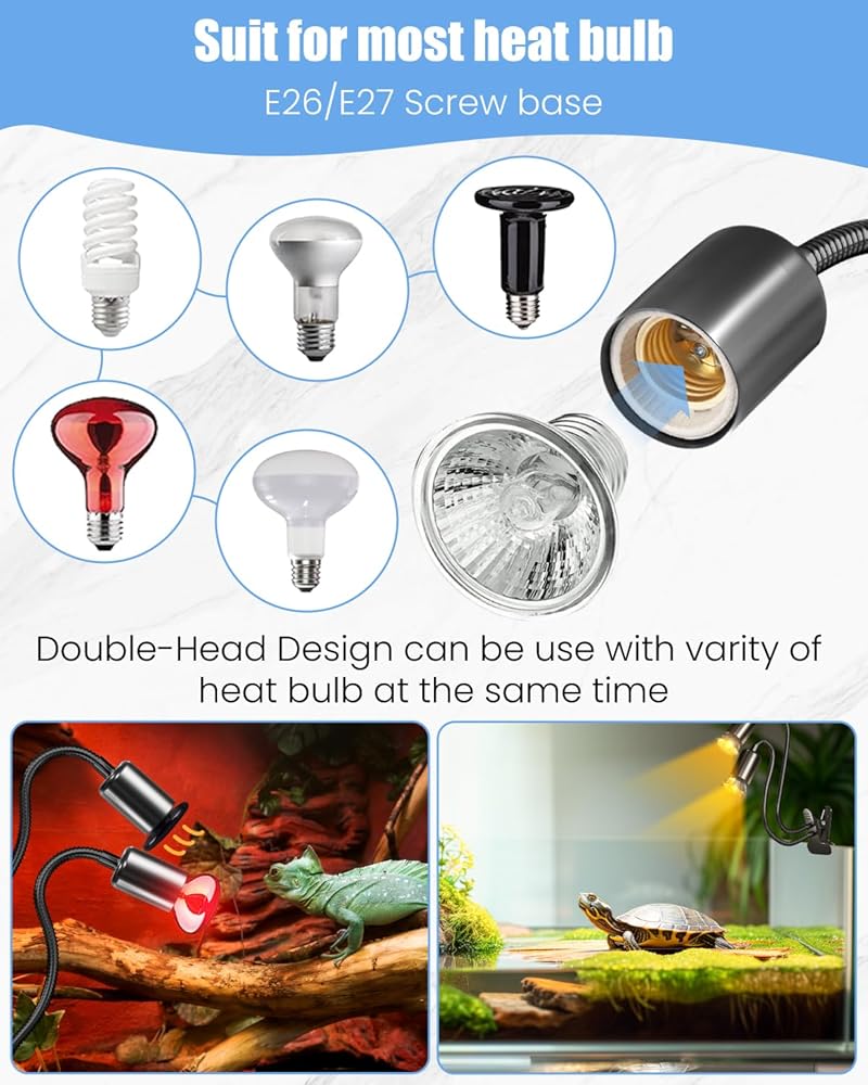 【يناسب مصابيح E27】يمكن استخدام كل رأس من مصابيح الحرارة السلحفاة هذه مع لمبة تسخين الزواحف حتى 100 واط، مثل لمبة التشمس/باعث الحرارة السيراميكي/مصباح الإضاءة بالأشعة تحت الحمراء وأكثر من ذلك. توفير طاقة تسخين عالية ودرجة حرارة مناسبة لاحتياجات الزواحف. . (المصابيح غير متضمنة)