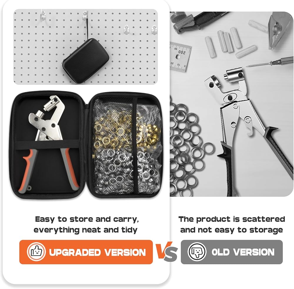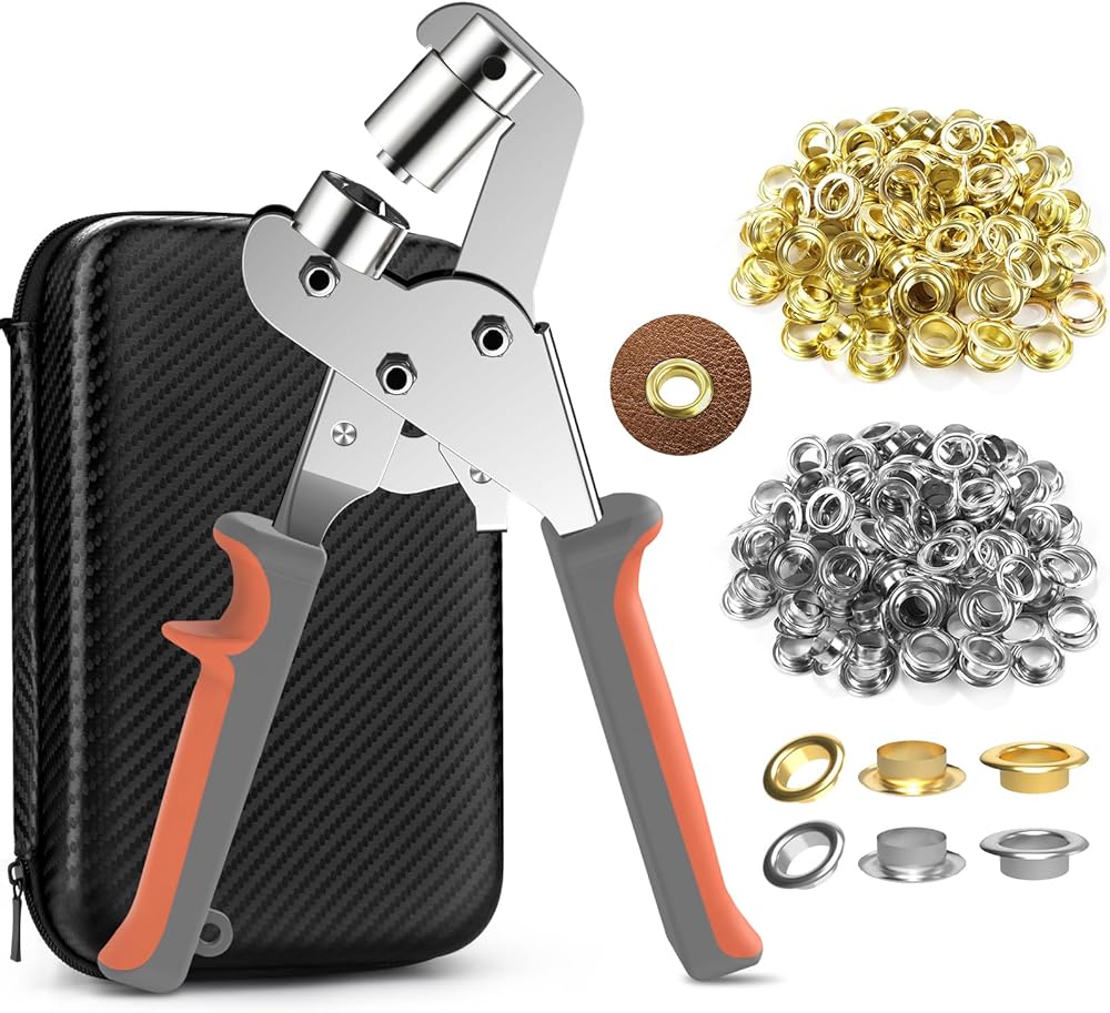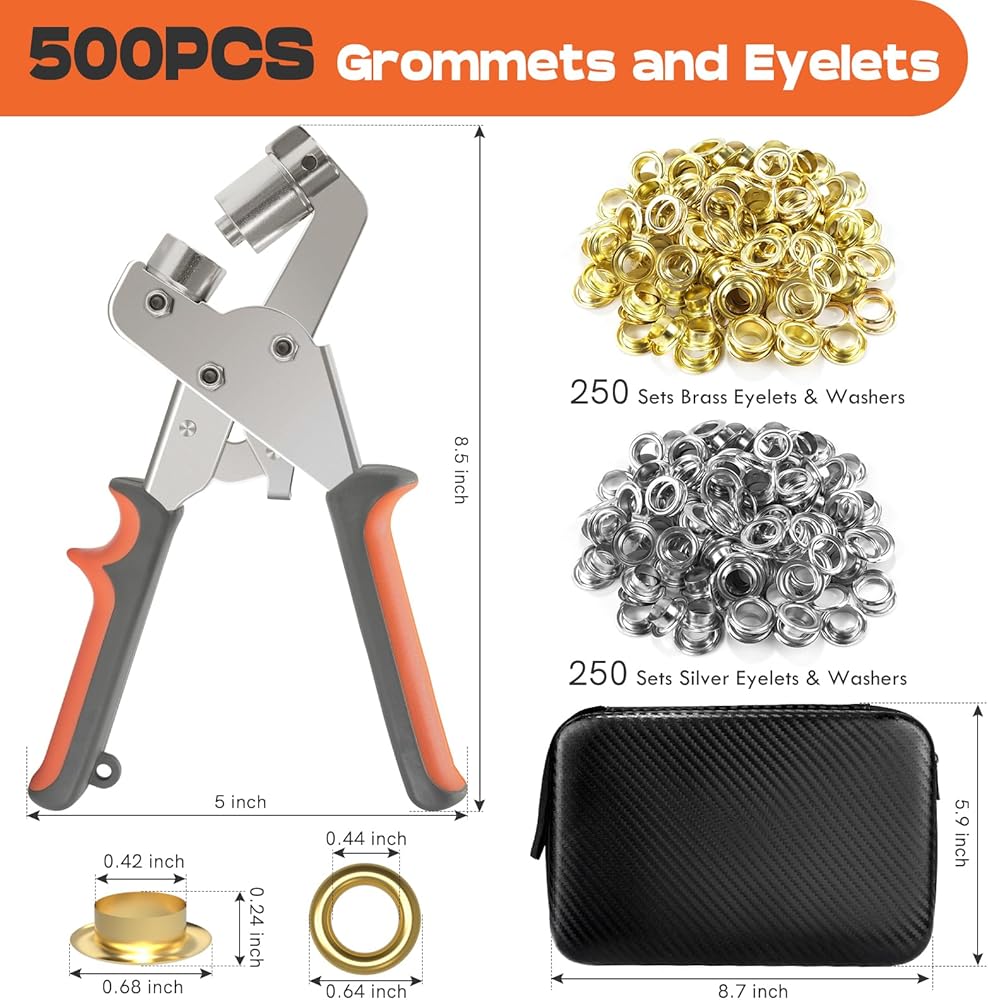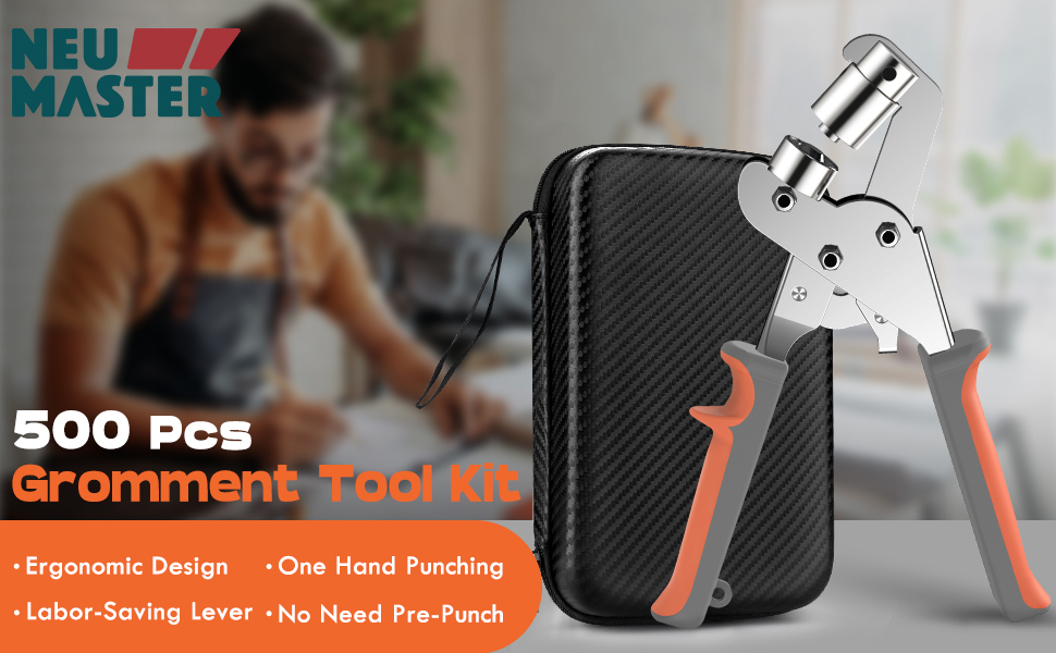 مجموعة NEU MASTER جروميت مع حقيبة، مجموعة أدوات جروميت 3/8 بوصة مع 500 قطعة من الثقوب، طقم ثقب محمول كماشة ثقب كماشة مجموعات ضغط جروميت لقماش القماش والجلود (حلقات 10 مم)
